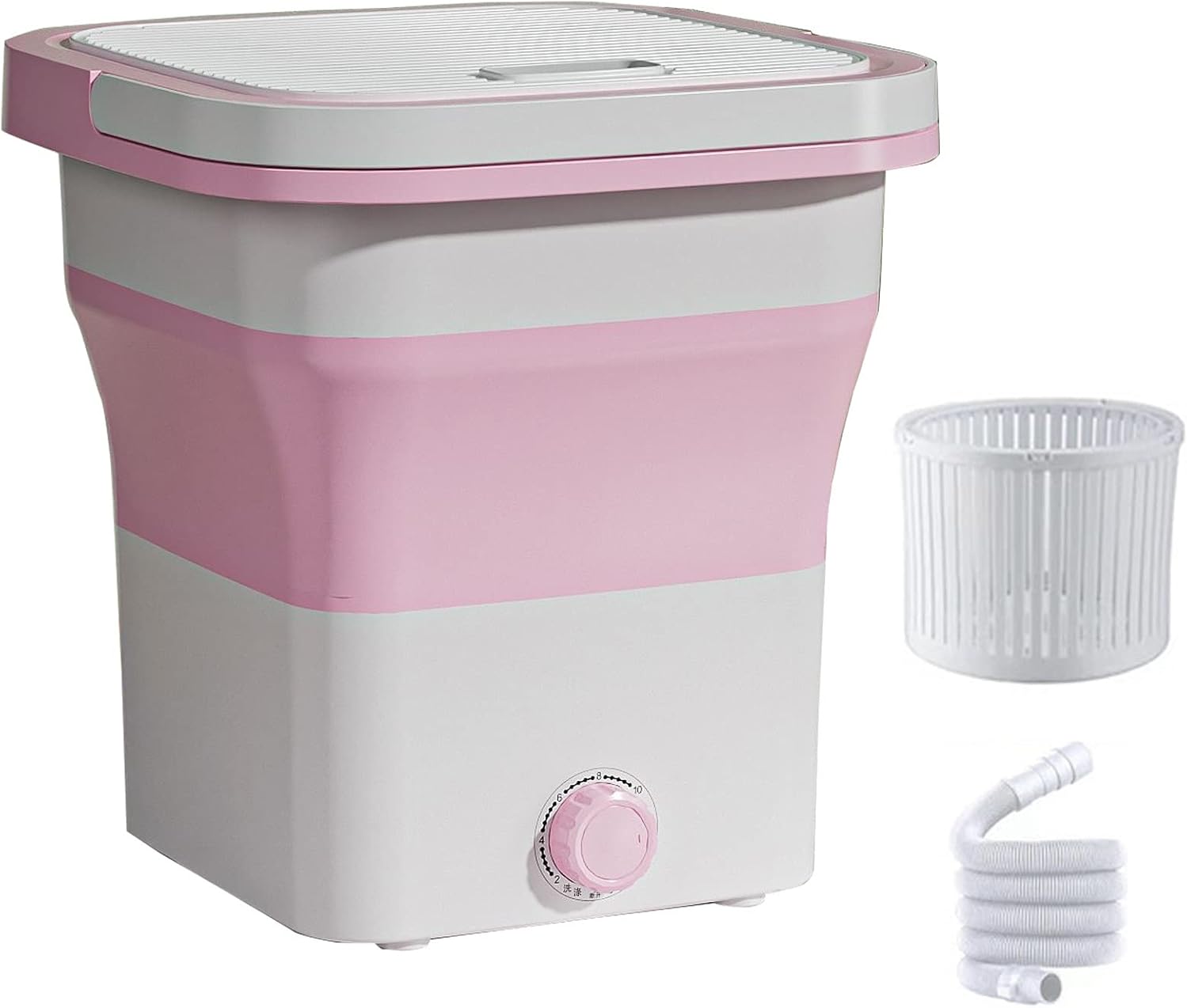 4.5l Portable Washing Machine, Mini Washing Machine Foldable, Small Washer Machine Mini, with Drain Basket for Apartment, Laundry, Camping, Rv, Travel, Underwear, Personal, Baby (Color : Pink)