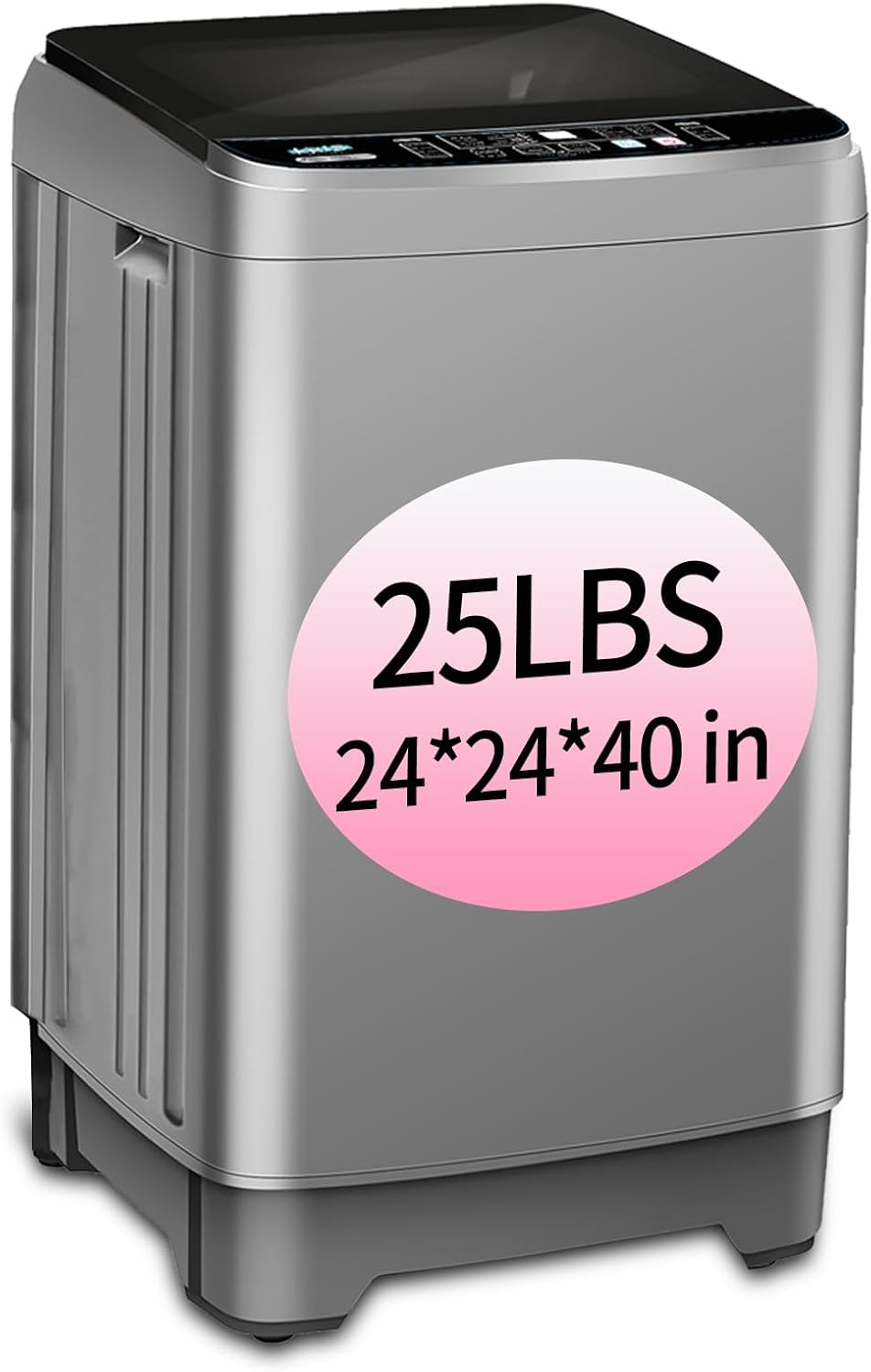 Full Automatic Washing Machine with LED Display, 25 lbs Portable Washer Drain Pump, 10 Programs & 8 Water Levels Selections, Ideal for RV, Camping, Apartment, Dorm, Dark Grey