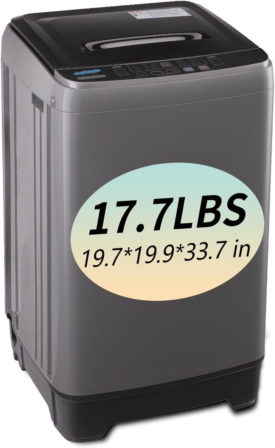 Full Automatic Washing Machine with LED Display, 17.7 lbs Portable Washer Drain Pump, 10 Programs & 8 Water Levels Selections, Ideal for RV, Camping, Apartment, Dorm, Dark Grey