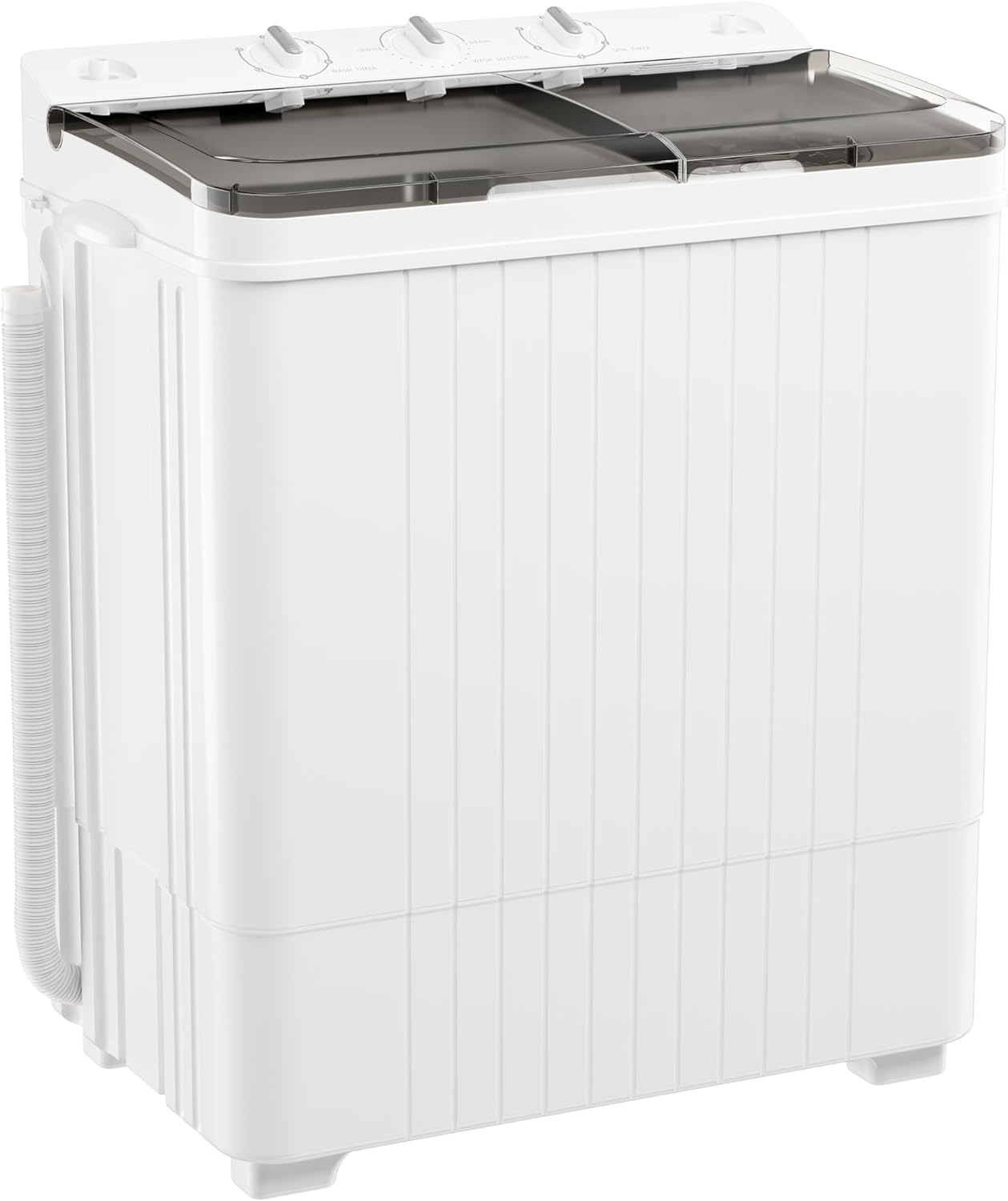 Greenvelly Portable Washing Machine, 28 Lbs Capacity Twin Tub Washing Machine, 18lbs Washer and 10lbs Spinner Combo, Compact Laundry Washer for Apartment,Camping, RVs and Dorms, Grey+White