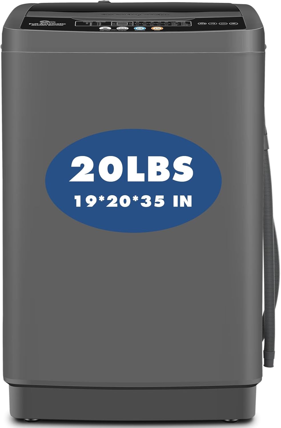 Nictemaw Portable Washing Machine, 20Lbs Capacity Full-Automatic Portable Washer Machine, 2.8Cu.ft Compact Laundry Machine with Drain Pump, 10 Programs & 8 Water Levels for Apartment Dorm RV
