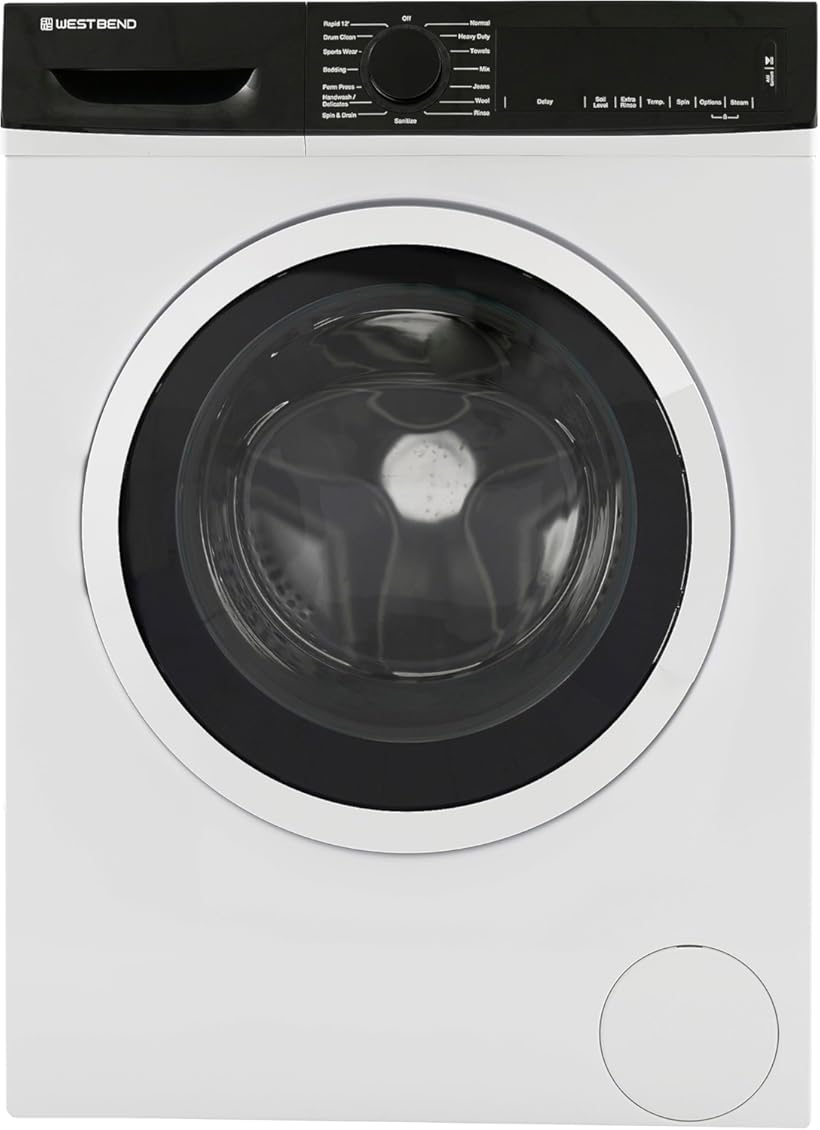 West Bend Washer Compact Front Load Washing Machine with 15 Wash Cycles, LED Display, See-Through Door, Stackable and Space-Saving Design, for Apartments, RVs, and Small Spaces, 2.2 Cu.Ft., White