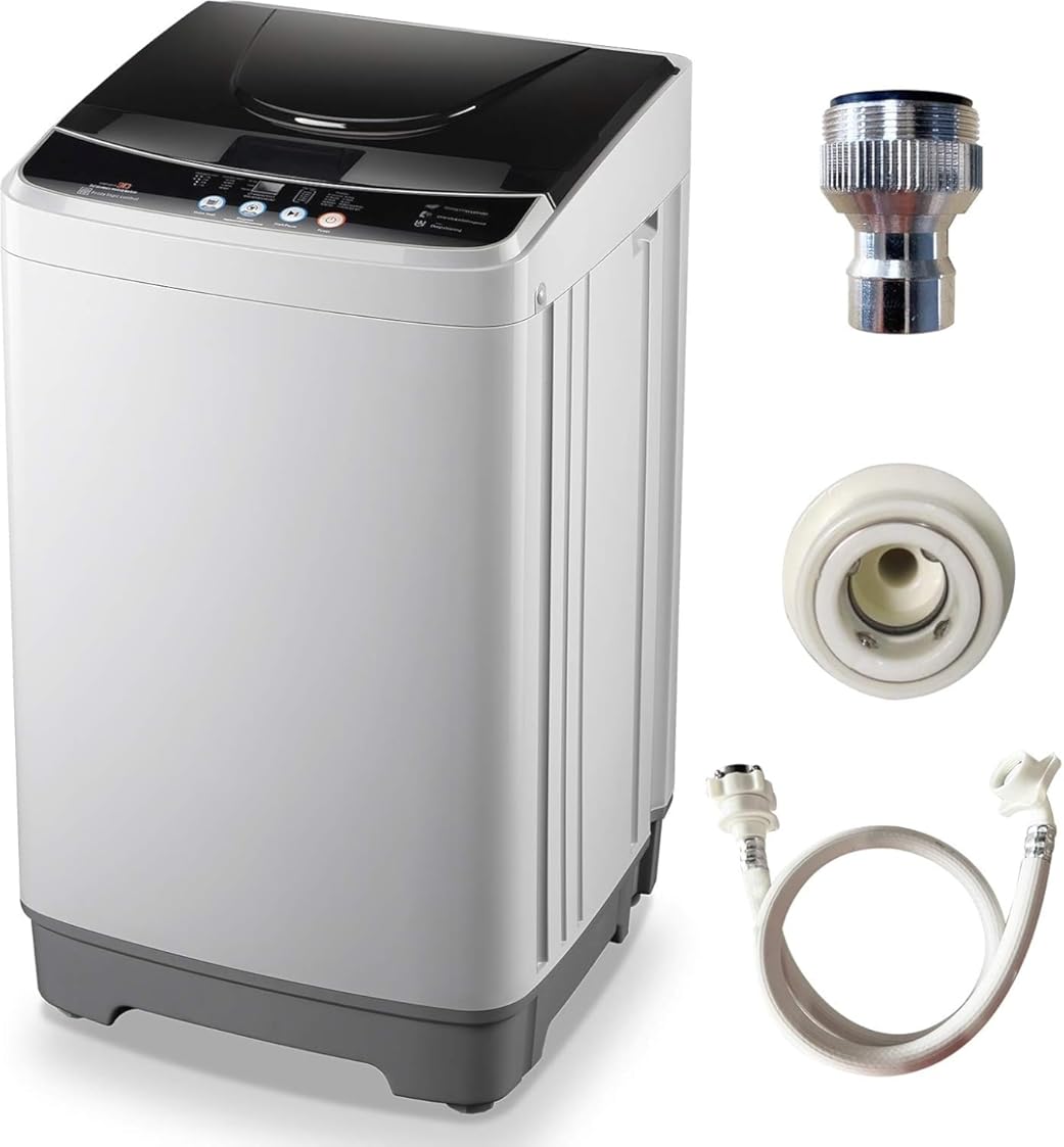 BLACK+DECKER 3.0 Cu. Ft. Portable Washer, 26.5 lb. Capacity Washing Machine, 6 Cycles, Quick Connect Sink Adapter and Drain Hose Included, Transparent Lid & LED Display, BPW30MW, White