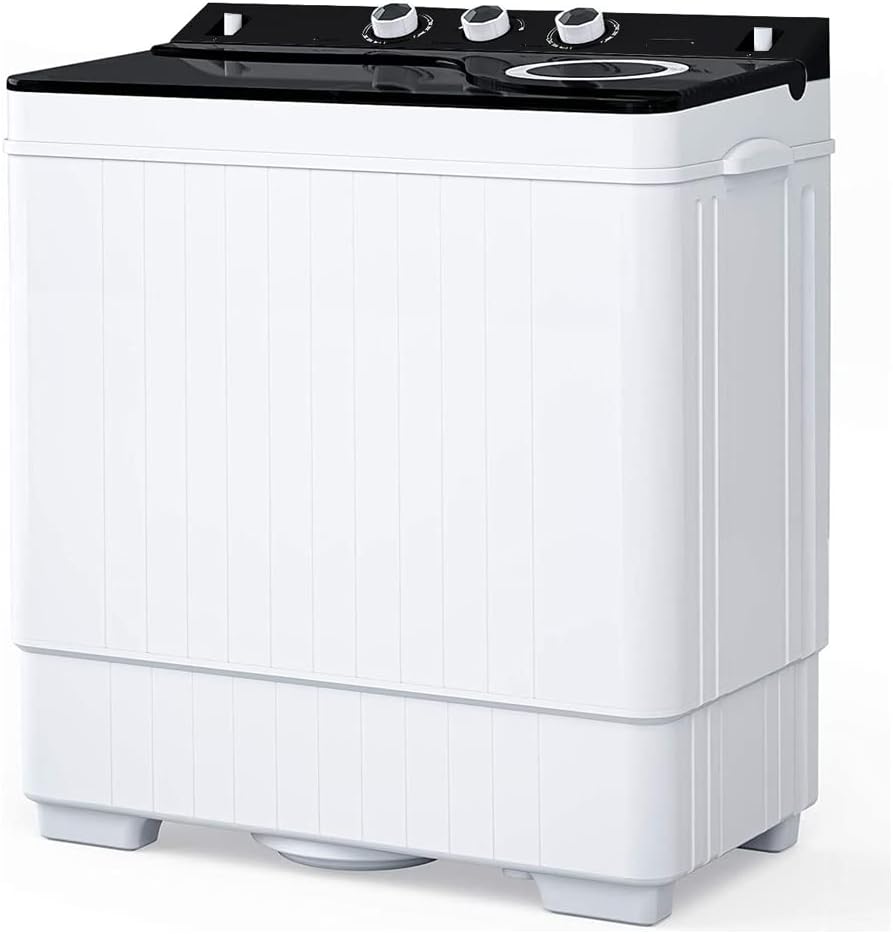 Portable Washing Machine 26Lbs 420W Semi-automatic Twin Tub Washer Compact Laundry Machine Washer(18Lbs) and Spinner(8Lbs) with Drain Pump for Apartments, Camping, RVs (Ship from US) (White&Black)