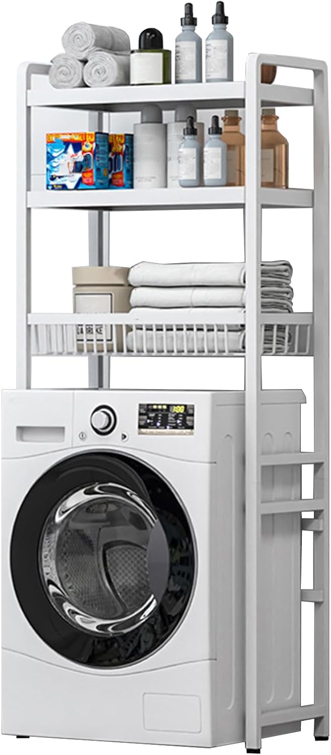 Storage Rack,Efficient Laundry Room Storage Rack Functional Washing Machine Organizer Rack for Limited Space and Storage Need, 70*25*168cm, Black/White