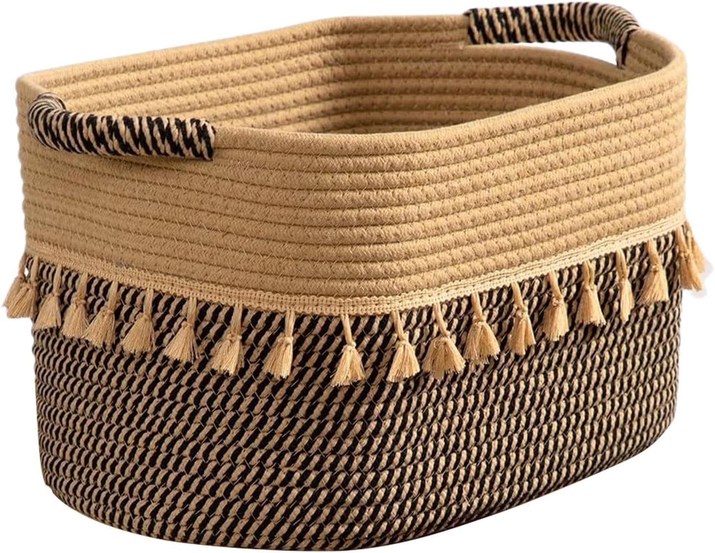 Multi-Purpose Storage Basket - Durable Cotton Woven Bin With Handles And Tassels, Practical Home For Laundry Bedroom Bathroom Kitchen Closet | Perfect For Toys Blankets Towels Books And Hou