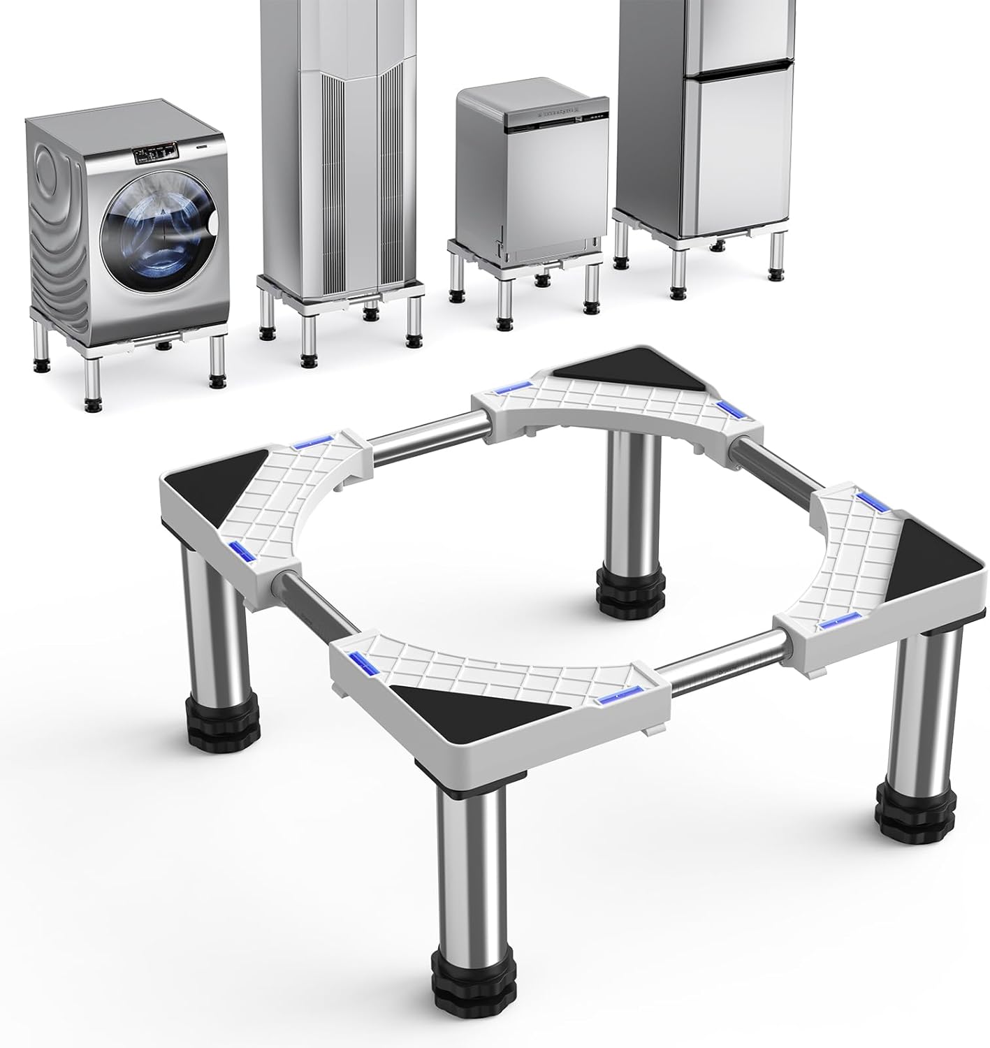 Nefish Mini Fridge Stand with 4 Strong Feet Height 7"-8.4" Adjustable Washer and Dryer Stand Heavy Duty Laundry Pedestal Washing Machine Stand Base Universal Platform for Home Appliance