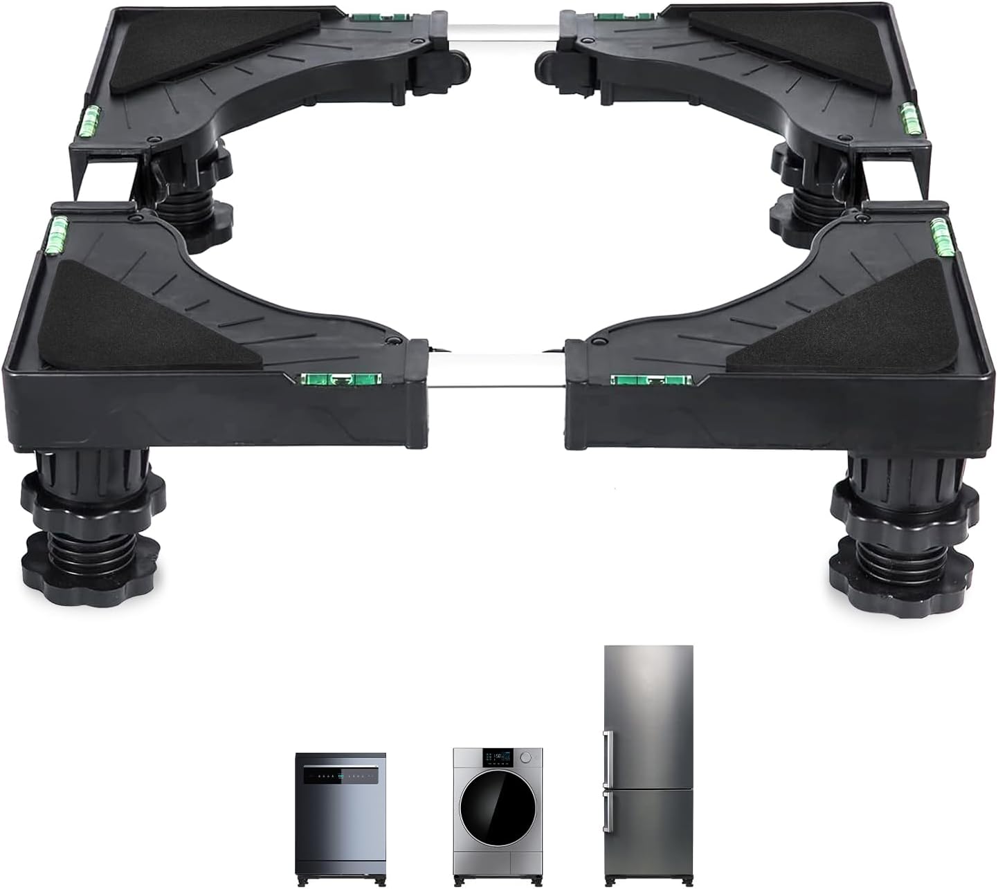 ToLanbbt Mini Fridge Stand Adjustable Height 8.3"-9.3" Washer and Dryer Stand Base with 4 Strong Feet Washing Machine Universal Stand Pedestal for 16"-24" Furniture Portable Appliance Black