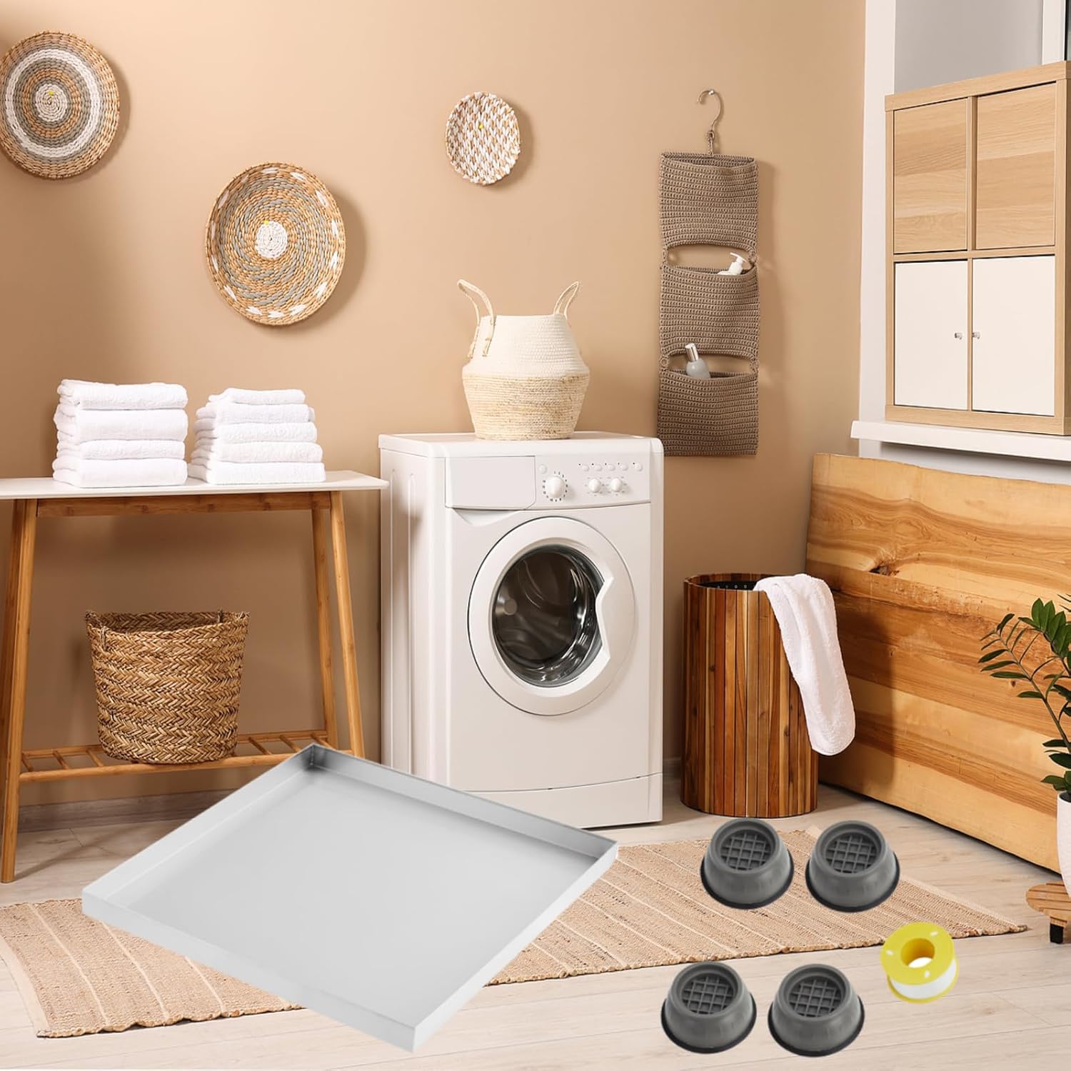 Garvee 24 in x 24 in Washing Machine Pan, Heavy Duty 304 Stainless Steel Washing Machine Tray with 4 Pcs Anti-Vibration Washing Machine Feet, Washer Pan, No Hole