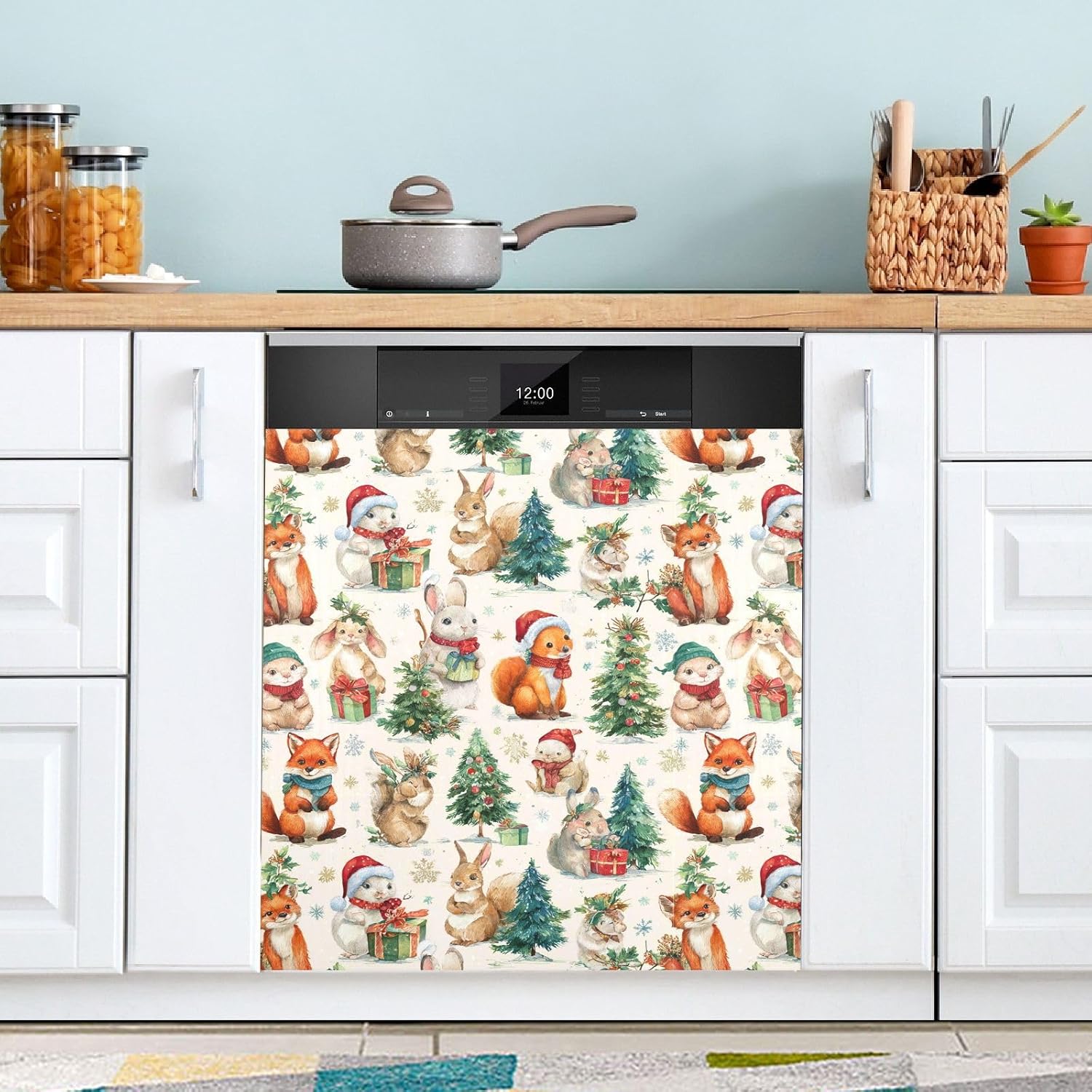 Pfrewn Christmas Winter Magnetic Dishwasher Cover Christmas Trees Rabbit Squirrel Fox Fridge Door Covers Kitchen Decal Vinyl Panel Decorative Refrigerator Laundry Appliances 23x26in