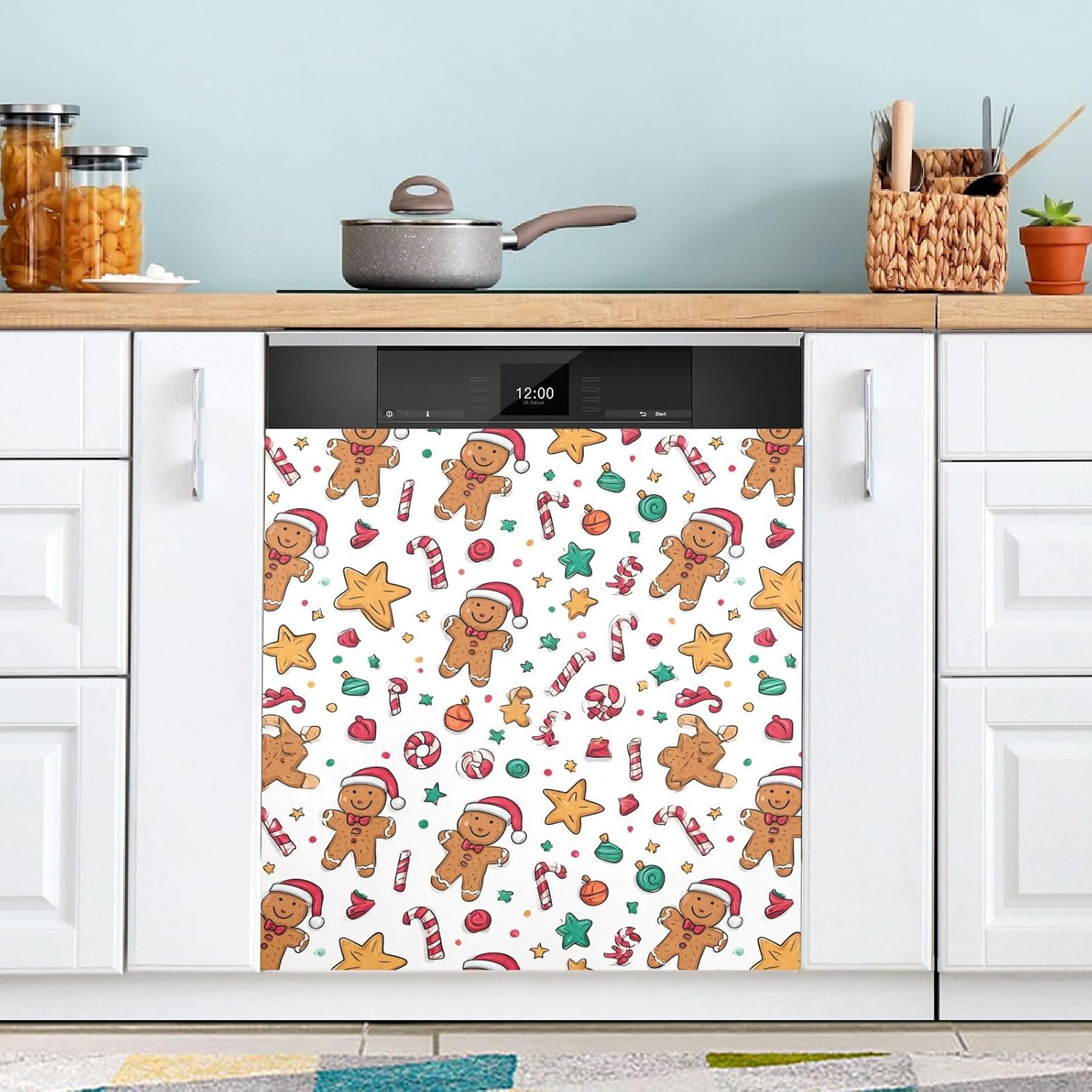 Pfrewn Christmas Winter Magnetic Dishwasher Cover Christmas Xmas Cute Gingerbread Man (50) Fridge Door Covers Kitchen Decal Vinyl Panel Decorative Refrigerator Laundry Appliances 23x26in