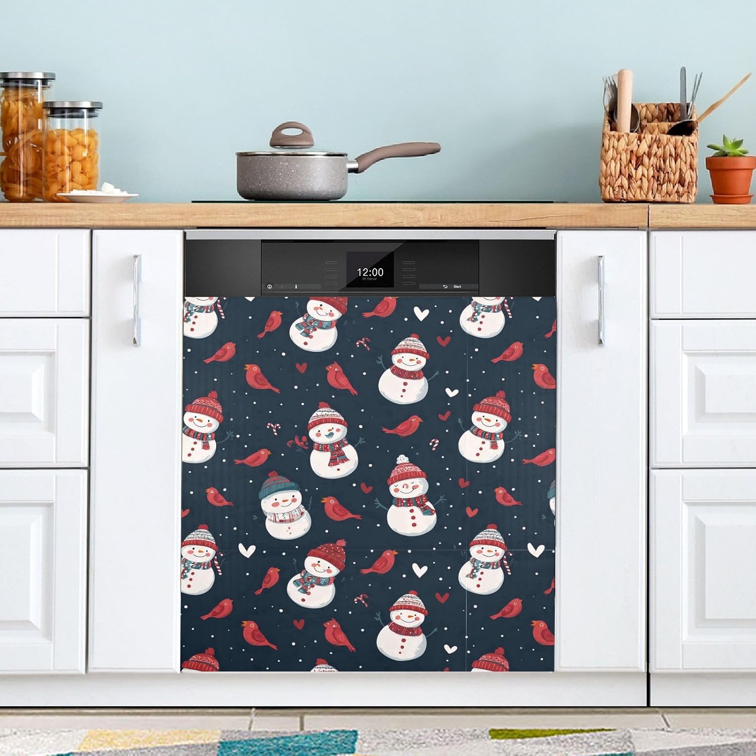Pfrewn Christmas Winter Magnetic Dishwasher Cover Christmas Winter Snowman Cute Snow (13) Fridge Door Covers Kitchen Decal Vinyl Panel Decorative Refrigerator Laundry Appliances 23x26in