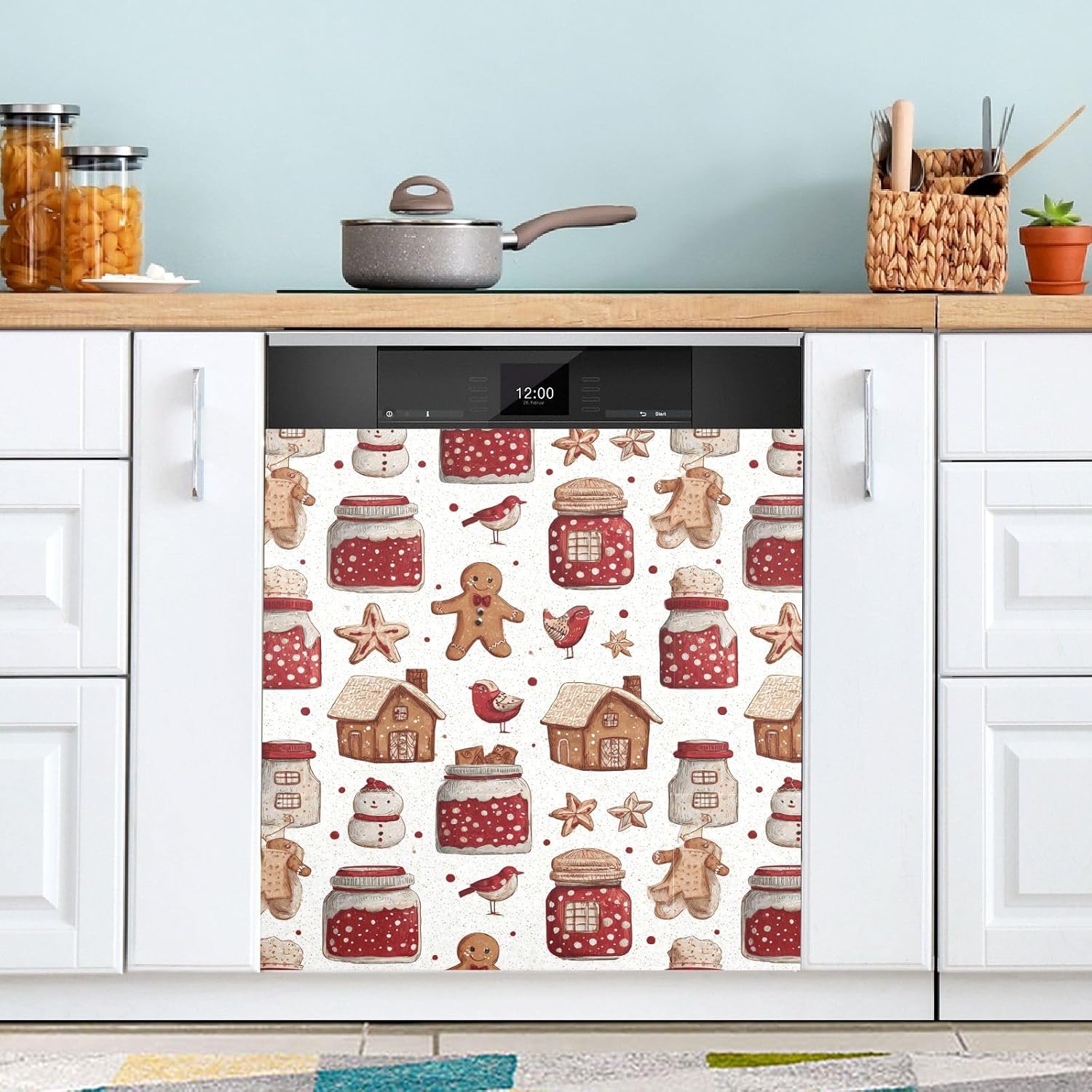 Pfrewn Christmas Winter Magnetic Dishwasher Cover Christmas Gingerbread Birds Stars Fridge Door Covers Kitchen Decal Vinyl Panel Decorative Refrigerator Laundry Appliances 23x26in