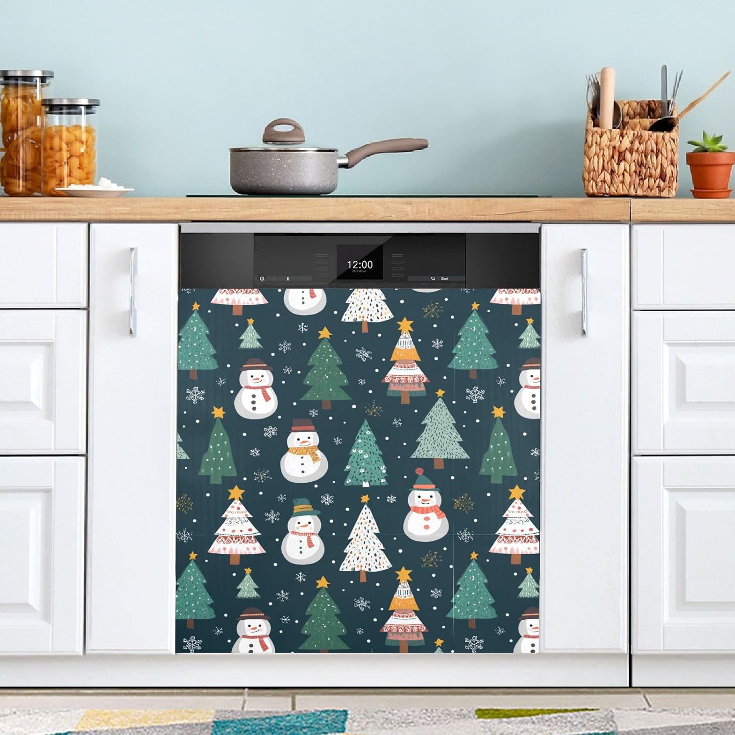 Pfrewn Christmas Winter Magnetic Dishwasher Cover Blue Snowmen Christmas Trees Pink Fridge Door Covers Kitchen Decal Vinyl Panel Decorative Refrigerator Laundry Appliances 23x26in