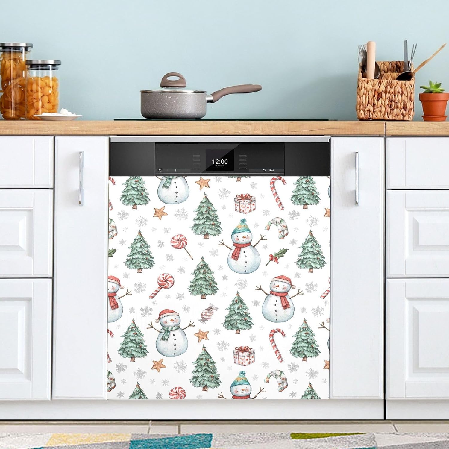 Pfrewn Christmas Winter Magnetic Dishwasher Cover Christmas Winter Snowman Cute Snow (8) Fridge Door Covers Kitchen Decal Vinyl Panel Decorative Refrigerator Laundry Appliances 23x26in