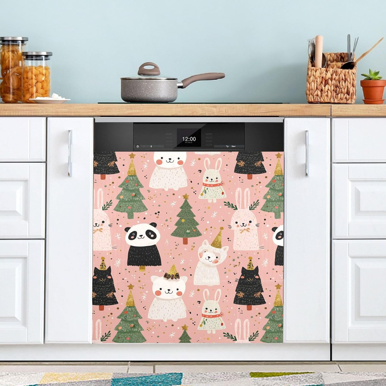 Pfrewn Christmas Winter Magnetic Dishwasher Cover Christmas Panda Bunny Cat Fridge Door Covers Kitchen Decal Vinyl Panel Decorative Refrigerator Laundry Appliances 23x26in