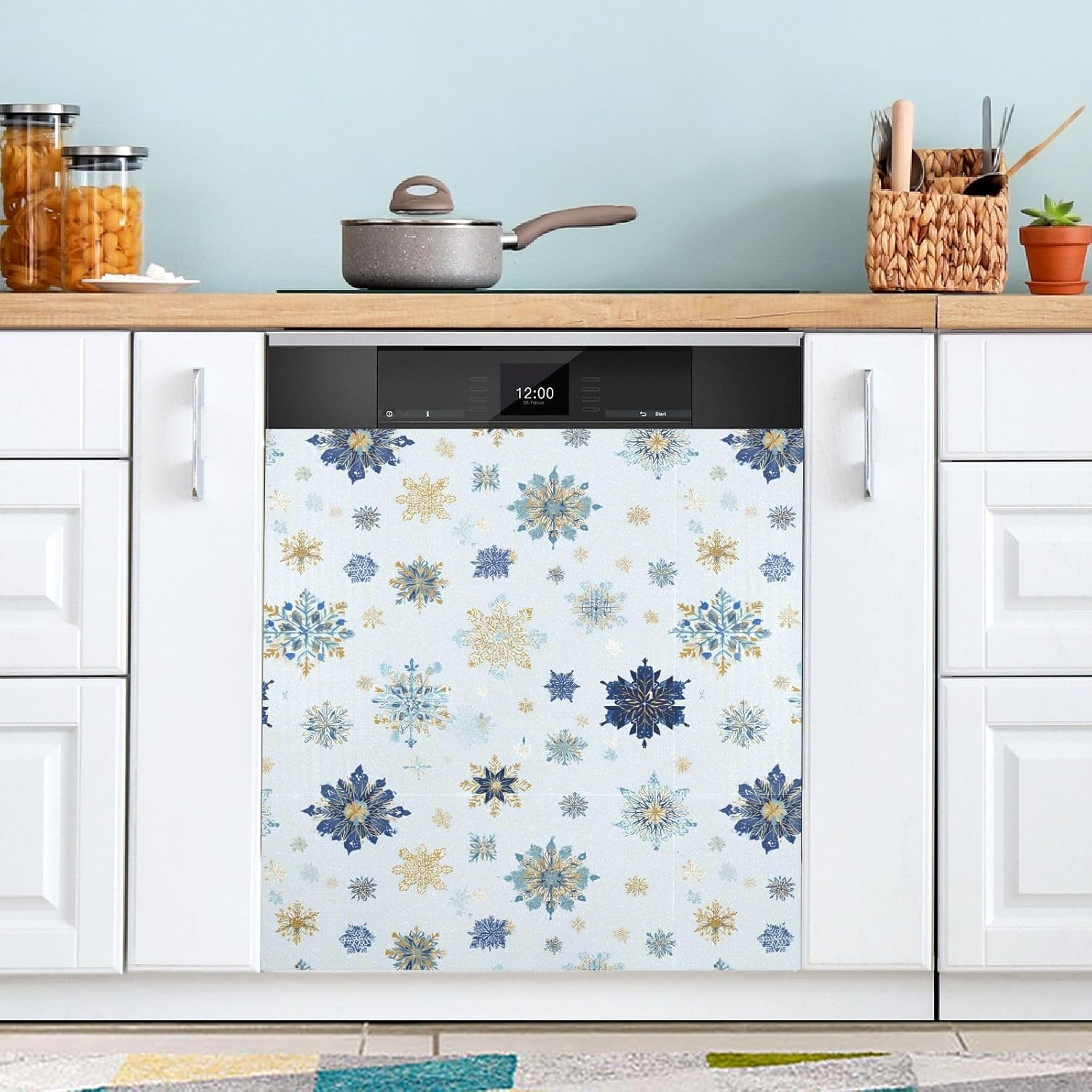 Pfrewn Christmas Winter Magnetic Dishwasher Cover Blue White Snowflakes Christmas Winter Flowers (13) Fridge Door Covers Kitchen Decal Vinyl Panel Decorative Refrigerator Laundry Appliances 23x26in