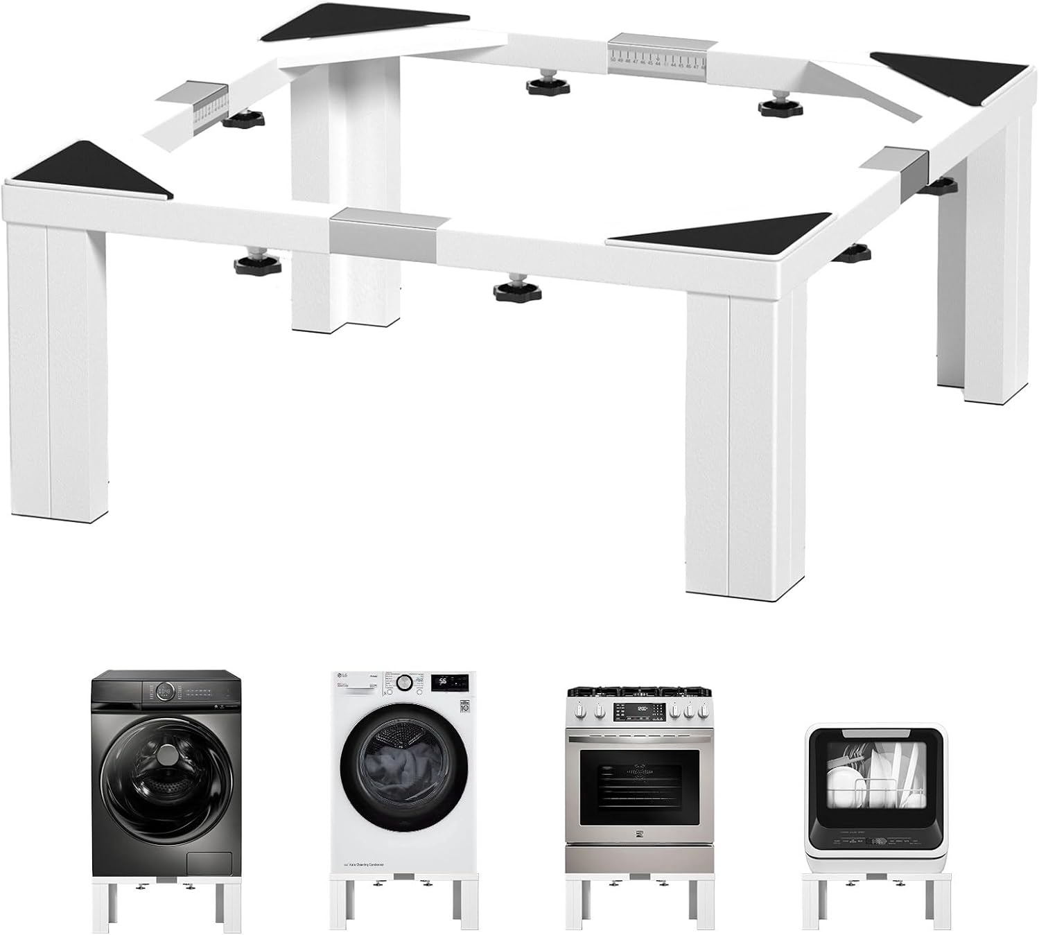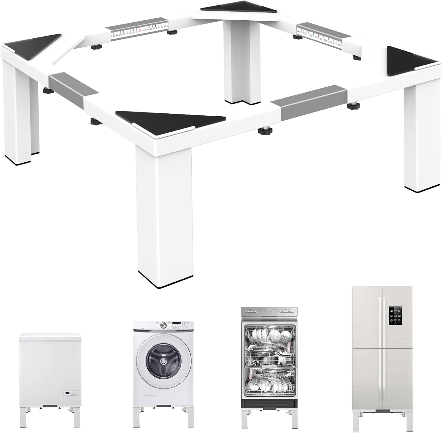 Chinchilla Heavy duty Stainless steel Laundry Pedestal ,12" Height Universal Washer and Dryer Pedestals, Adjustable Universal Washing machine stand and Fridge stand(White)