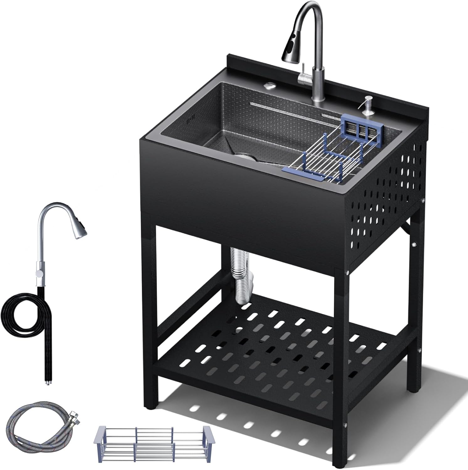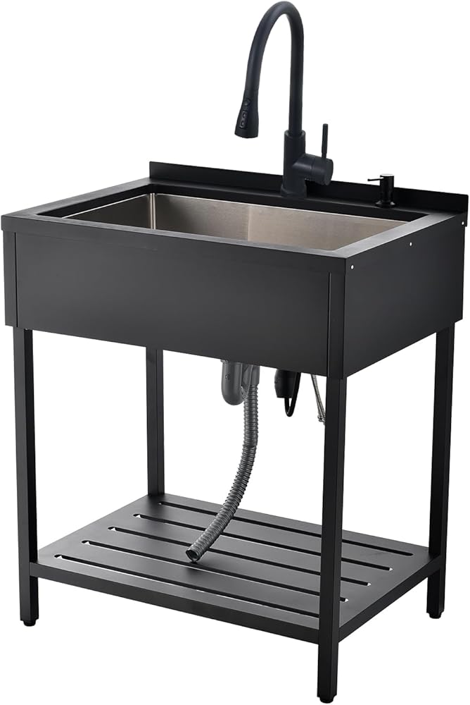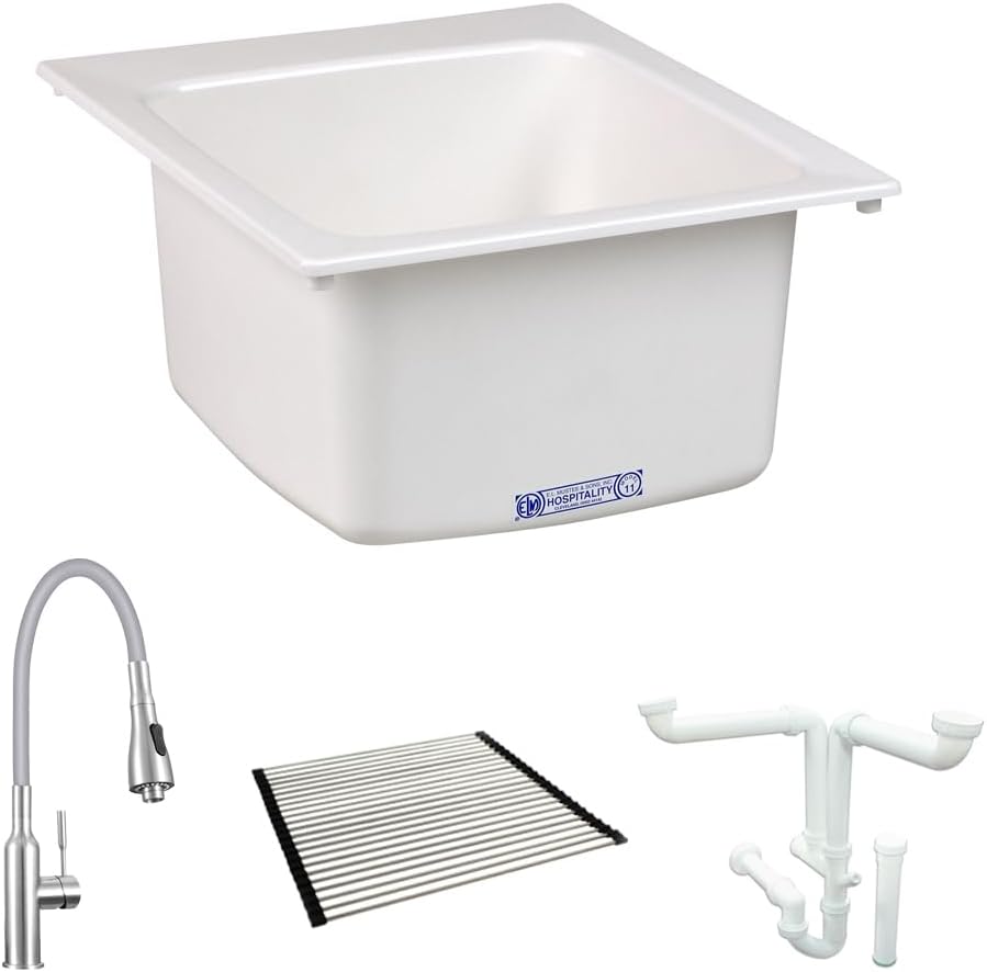 Mustee K-11 20-in x 17-in 1-Basin White Drop-In Laundry Sink with Drain and Faucet