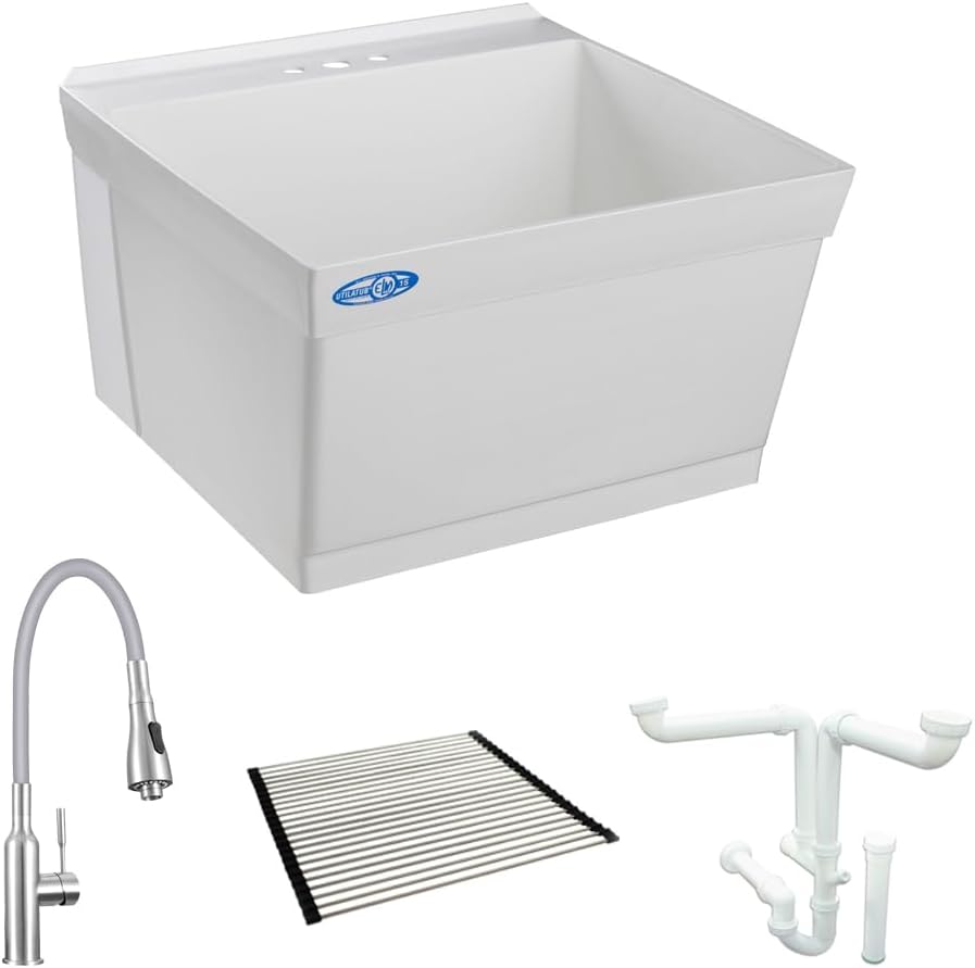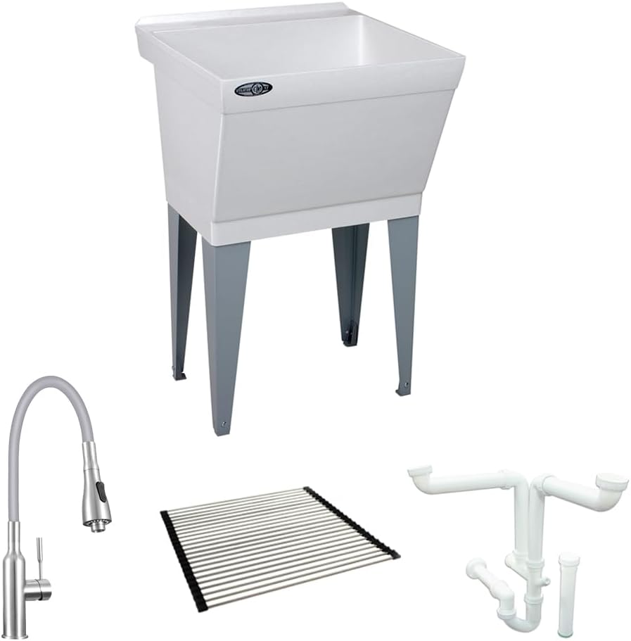 Mustee K-17F 23-in x 23-in 1-Basin White Freestanding Laundry Sink with Drain and Faucet