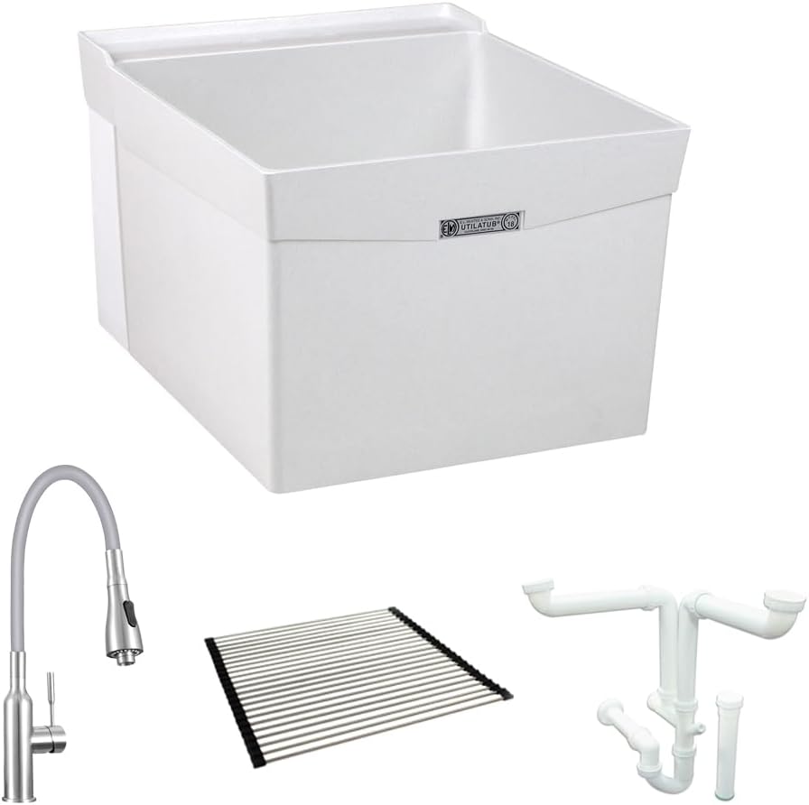 Mustee K-18W 20-in x 24-in 1-Basin White Wall Mount Laundry Sink with Drain and Faucet