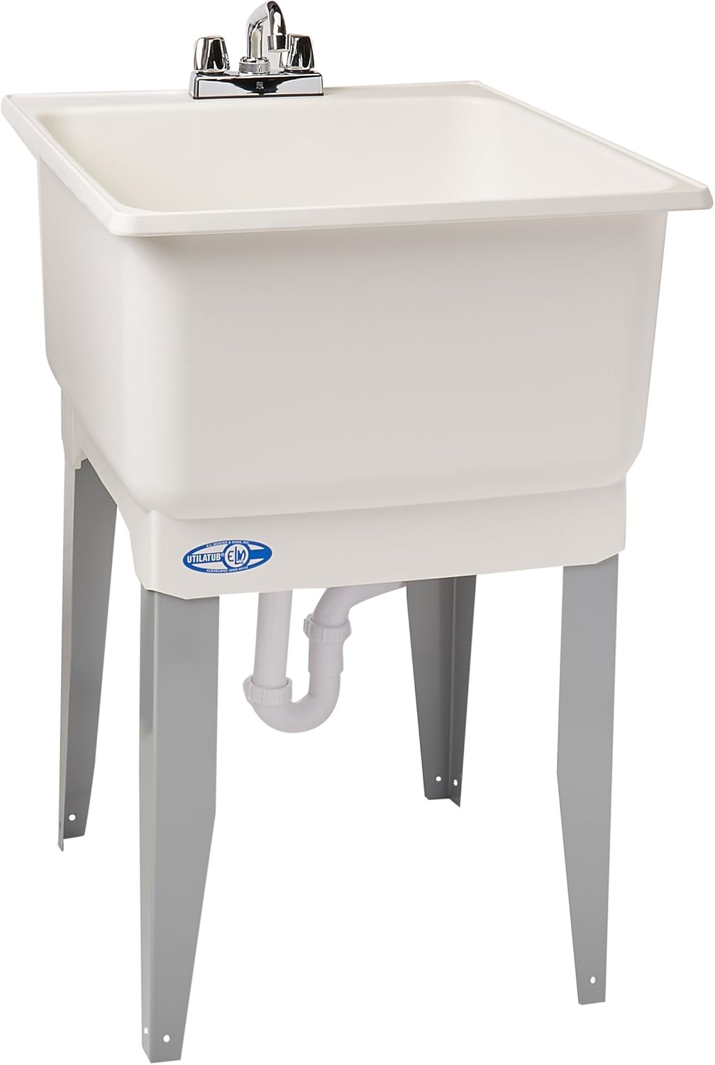 Mustee 14CP Polypropylene Freestanding Tub Utility Sink with Drain and Faucet, One Size, White