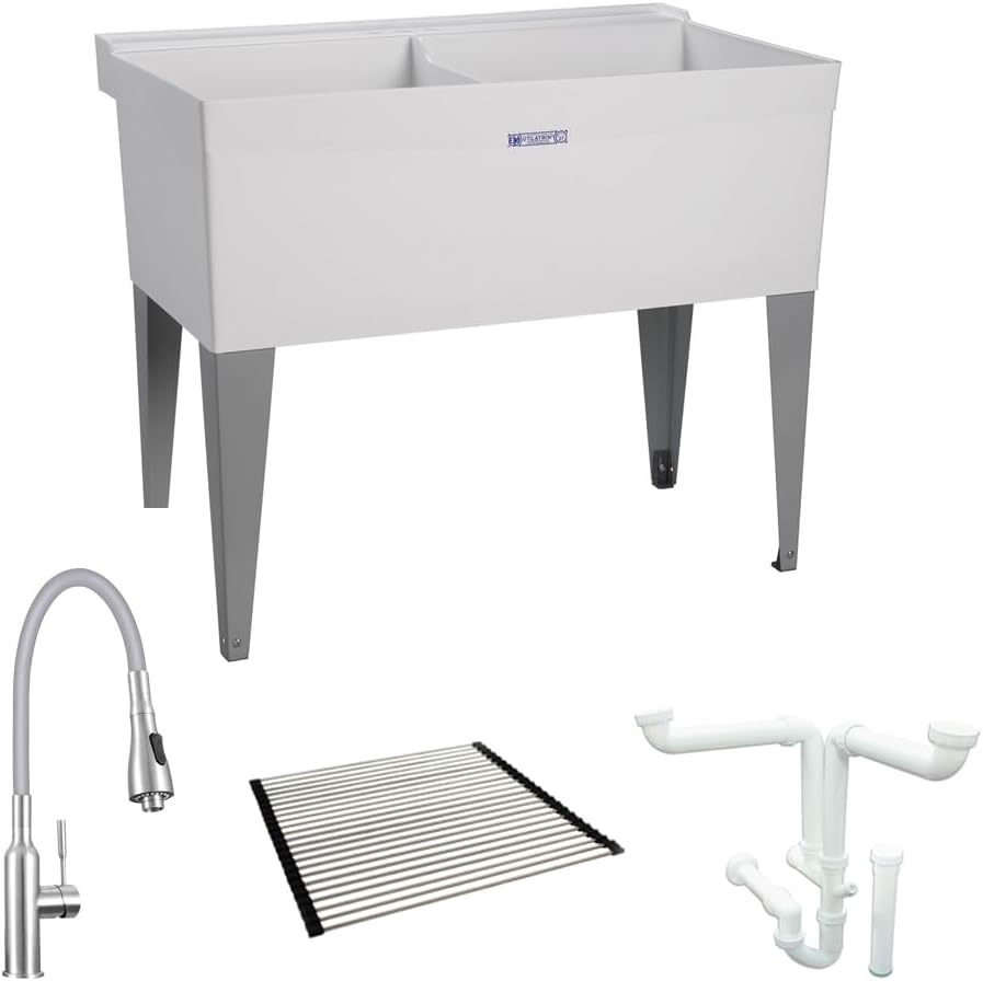 Mustee K-27F 25-in x 40-in 2-Basin White Freestanding Laundry Sink with Drain and Faucet