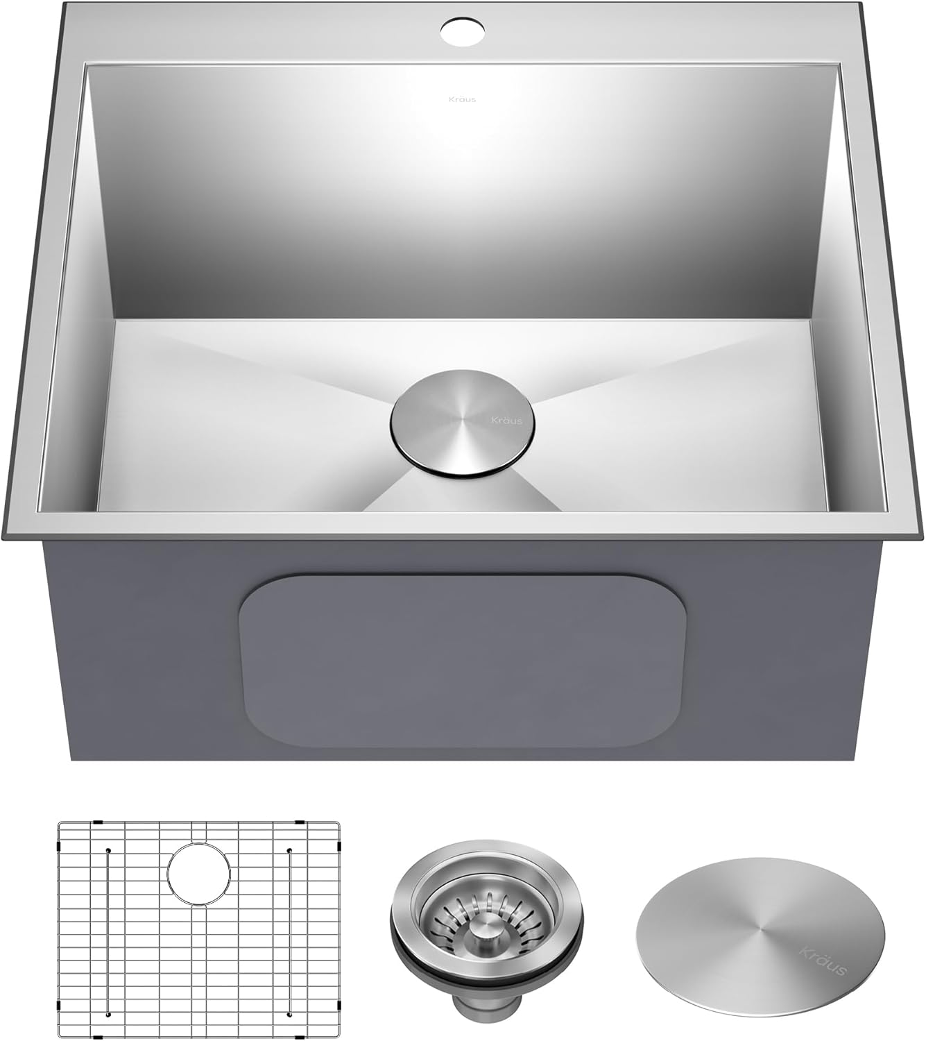 KRAUS Standart PRO 25-inch Drop-In Top Mount 16 Gauge Stainless Steel Single Bowl Laundry Utility Sink, KHT301-25L
