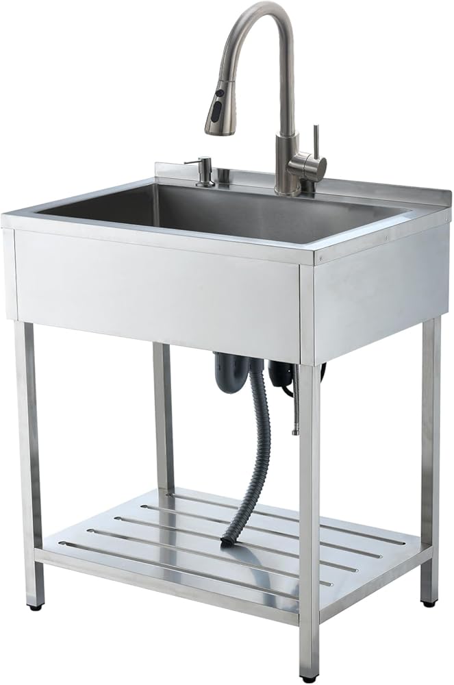 Free Standing Utility Sink with Faucet, 30.7"x21.65" Large Stainless Steel Utility Sink Outdoor Utility Sinks 16 Gauge Single Bowl Laundry Room Sinks for Laundry Outdoor Garage