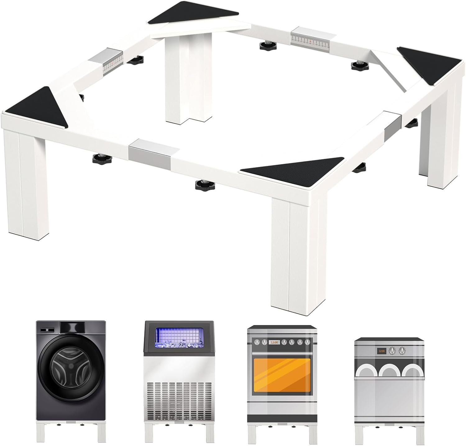 I'Ezonk Full size Heavy duty Stainless steel Laundry Pedestal ,12" Height Washer and Dryer Pedestals, Adjustable Universal washing machine stand and Ice maker stand(White)