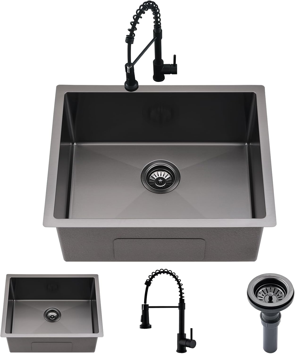 Dcolora 24 Inch White Undermount Deep Laundry Sink Single Bowl Laundry Utility Room Sink Granite Composite,#DC-0002GWL