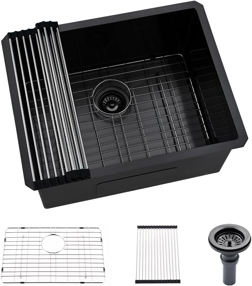 Black Stainless Steel Undermount Laundry Sink-Hovheir 24x19x12 Deep Undermount Stainless Steel Utility Sink Matte Black 16 Gauge Single Bowl Laundry Room Sinks Outdoor