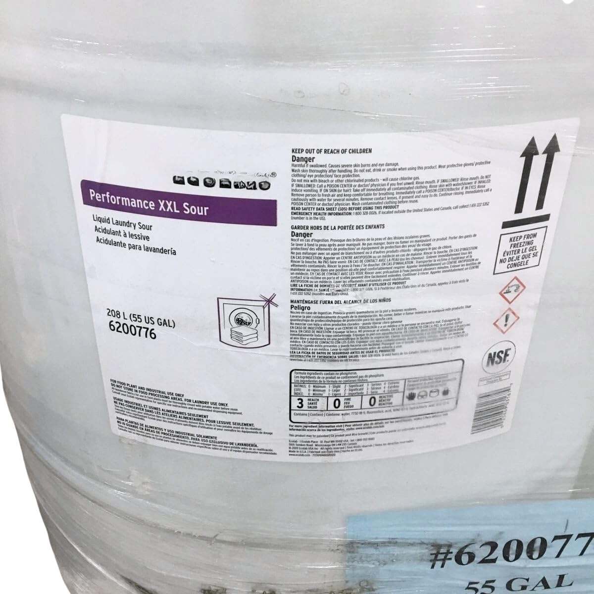 Performance XXL Sour Industrial Laundry Detergent, 55-Gallon Drum, Heavy-Duty Fabric Care, pH Balancer for Commercial & Industrial Laundry, Item #6200776