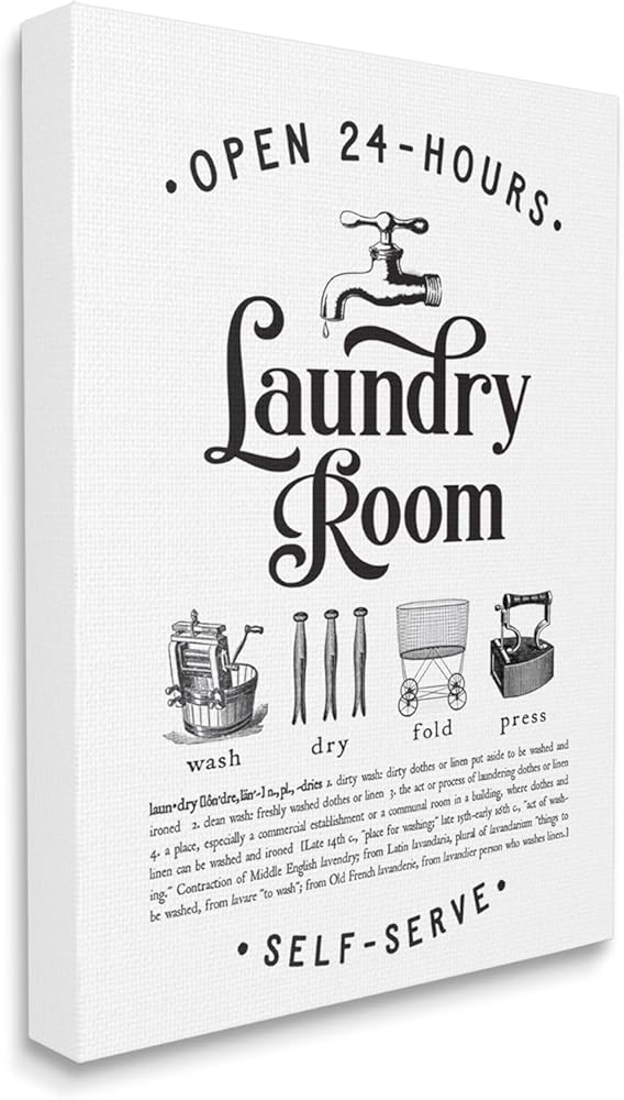 Stupell Industries Vintage Laundry Room Definition Wash Dry Fold, Designed by Lettered and Lined Canvas Wall Art, White