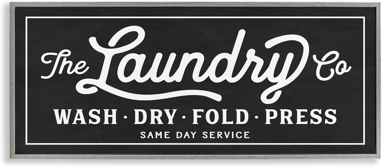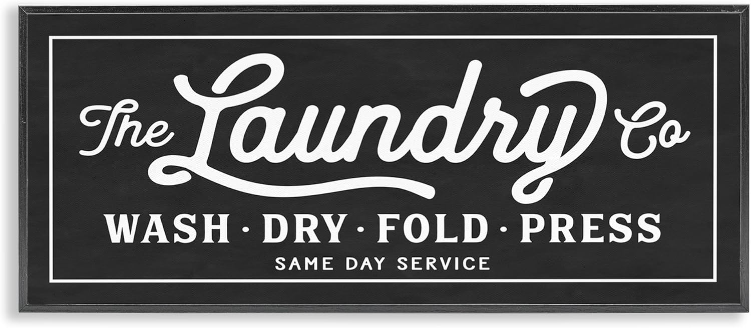 Stupell Industries Vintage Laundry Sign Cursive Typography Black Framed 10 x 24