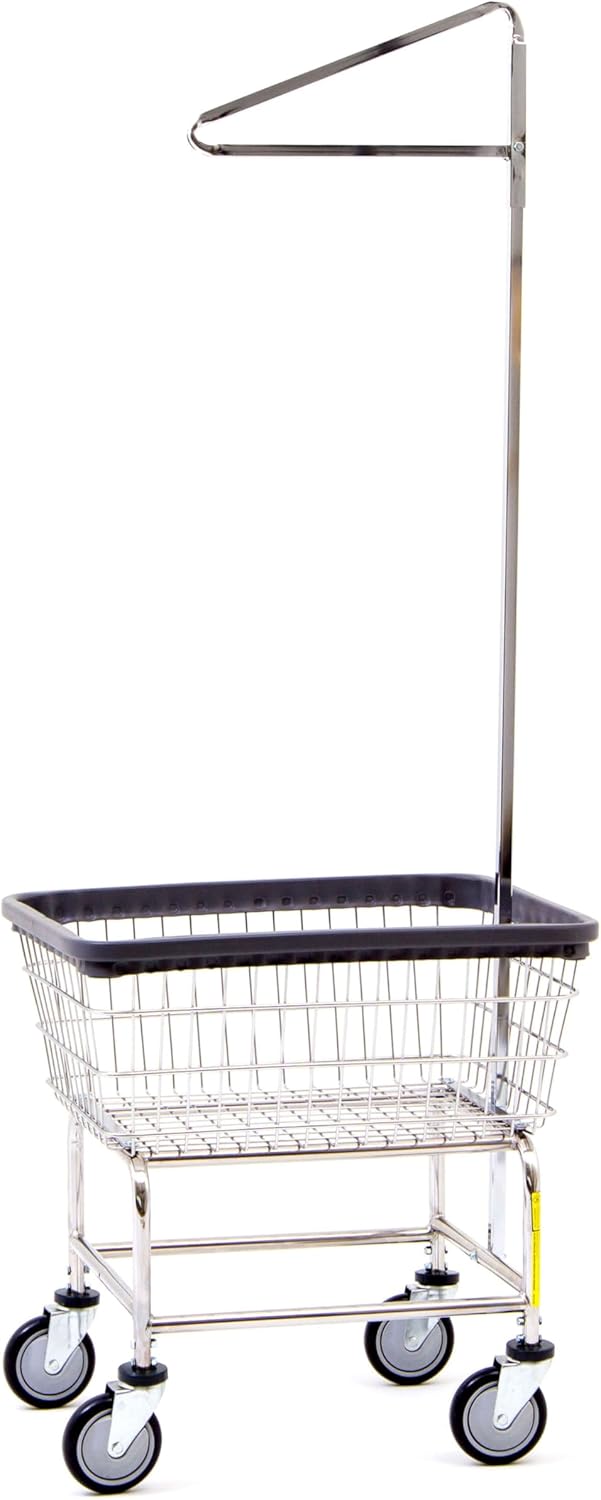 R&B Wire® 100E91 Heavy Duty Wire Laundry Cart with Single Pole Rack | 2.5 Bushel | Steel Frame with Chrome Finish | Commercial Laundry Basket | Industrial Bumper | 5" Clean Wheel System™ Casters