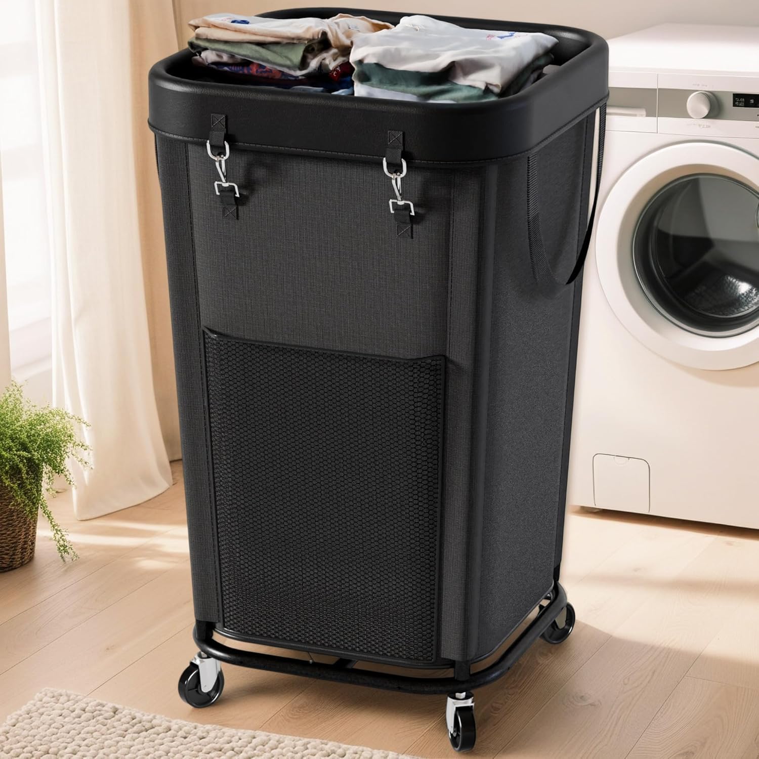 Laundry Hamper Laundry Basket with Wheels, Large Capacity Dirty Clothes Basket with Wheels, Suitable for Bedrooms, Bathrooms and Laundry Rooms (Black, 160L)