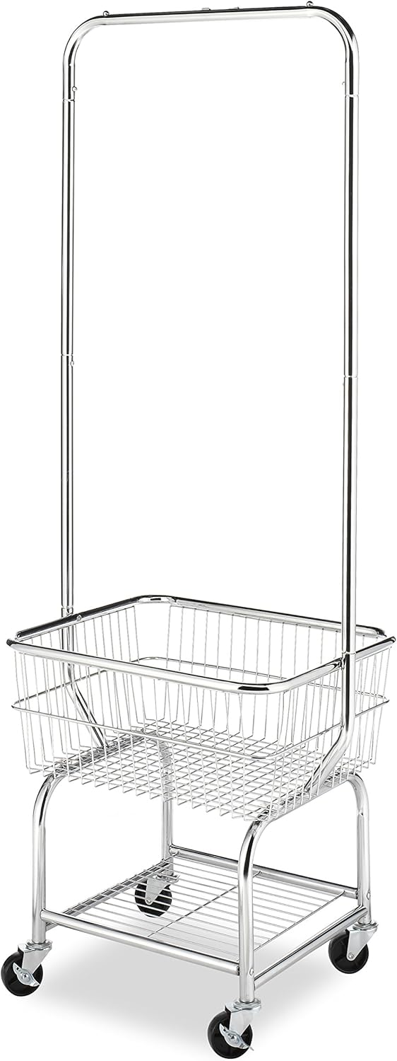 LVP Big Brother Commercial Laundry Cart with Dual Pole Rack 3.25 Bushels (Matte Black Vinyl Rust Coating, Extra Large)