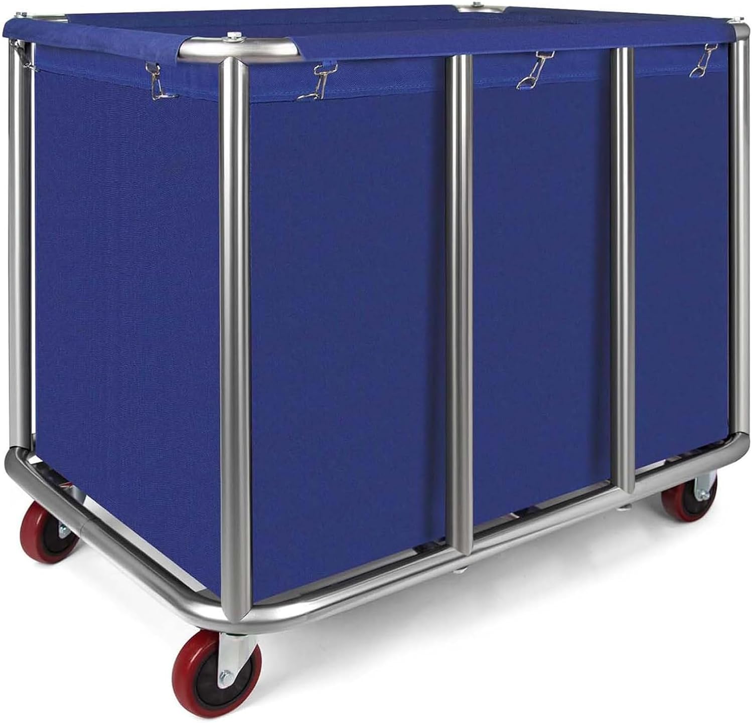 Commercial Laundry Cart with Wheels, 400L Capacity Heavy Duty Large Laundry Basket with Watertight Oxford Bag and Sturdy Steel Frame for Home, Hotel,Hospital,440 lbs(Blue)