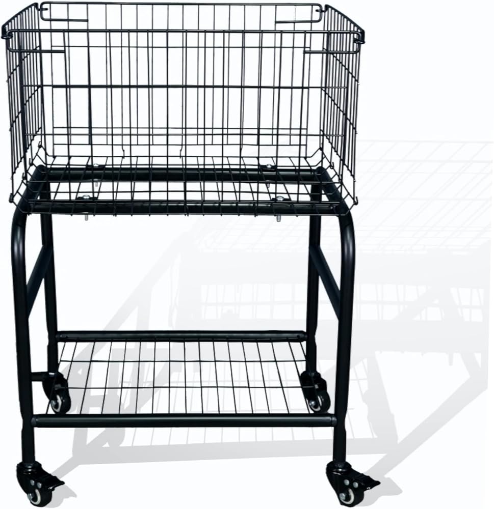 31" height Rolling Laundry Basket with Wheels, Heavy Duty 2-Tier Metal Wire Laundry Cart, Foldable Hamper with Industrial Wheels & Brakes for Clothes, Bedroom, Dorm, Apartment (Black)