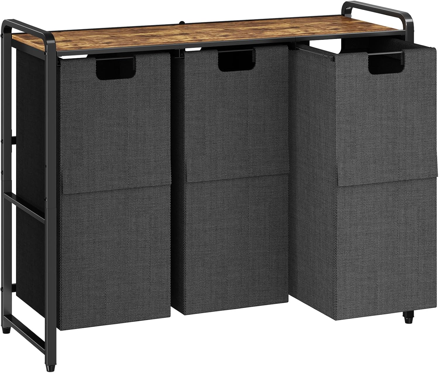 Kitstorack Laundry Hamper with Shelf - Laundry Basket Organizer with 3 Pull-Out Removable Bags Laundry Sorter Dirty Clothes Hamper for Laundry Room Storage Bathroom, 3 X 11.8 Gallons (44.5L)
