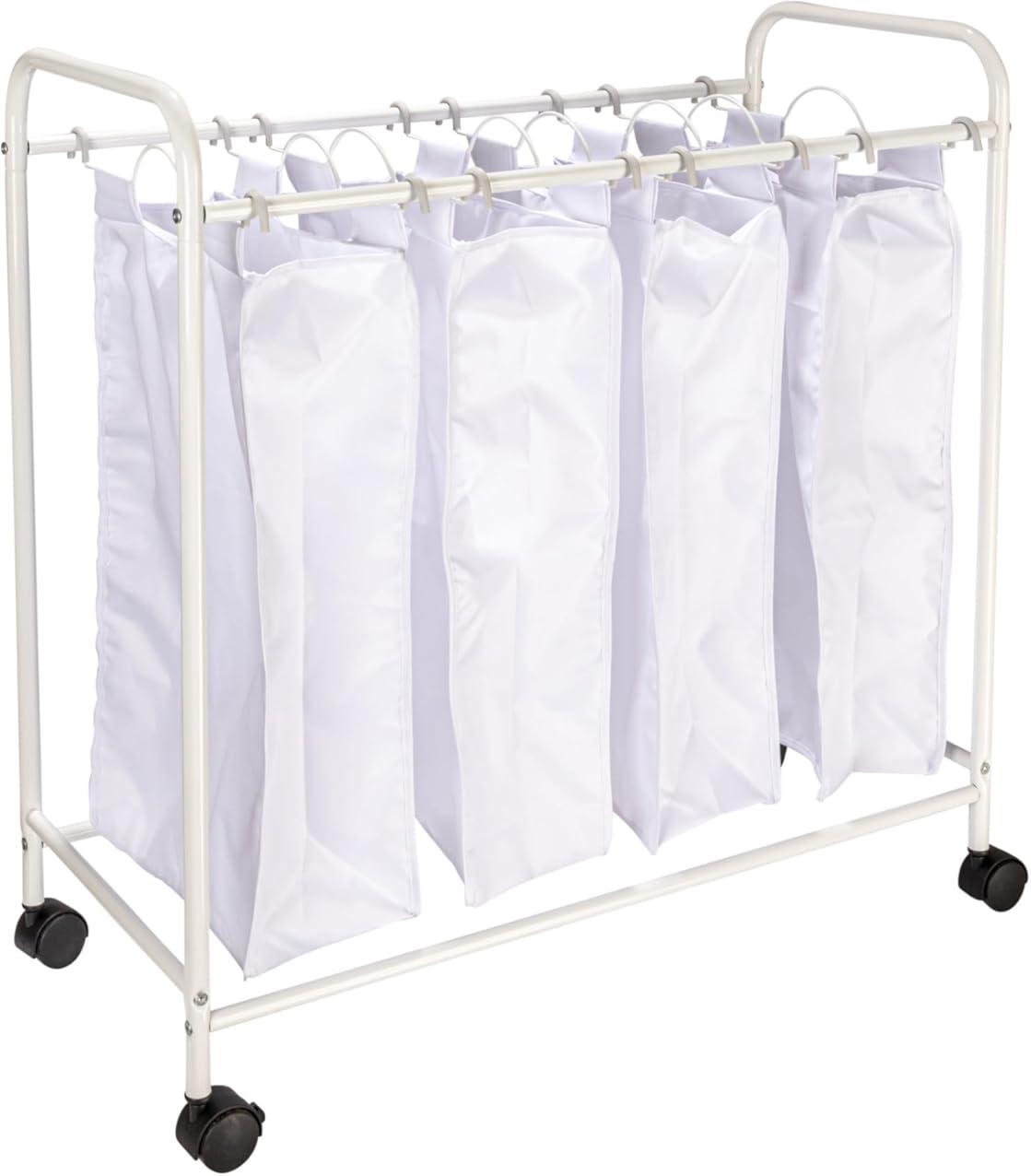 Household Essentials Rolling Laundry Sorter, 4 Bag Laundry Sorter Cart with Washable and Removable Bags, White