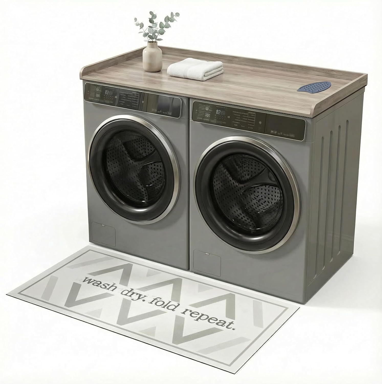 Premium Washer Dryer Countertop with Anti-Slip Pad, 54inch Laundry Room Organization Set, Stackable Storage Solution with Silicone Ironing Mat, Diatomite Mat(Gray)