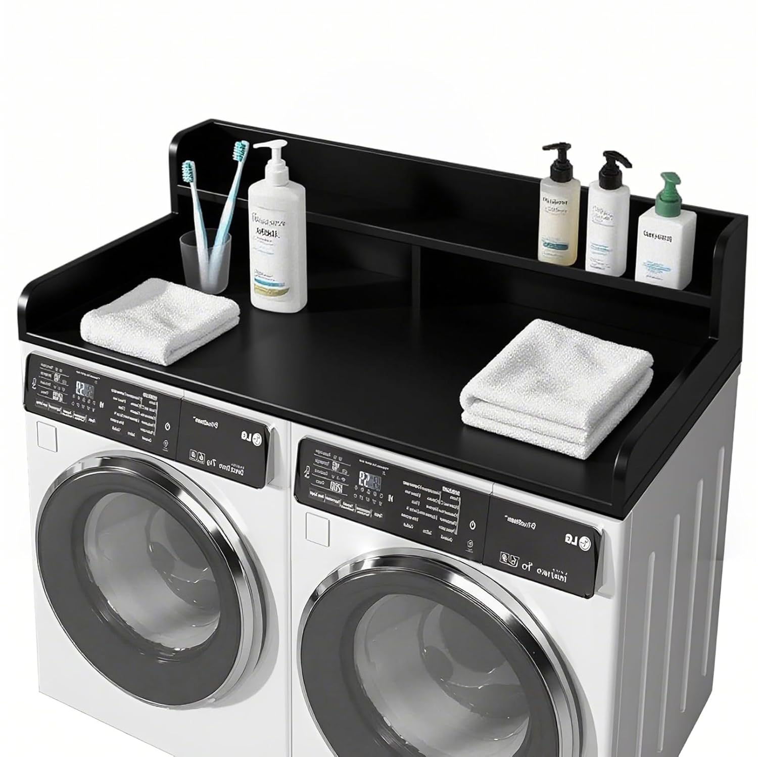 54" W x 27.5" D Washer Dryer Countertop, Laundry Wood Shelf Topper with Edge, 2-Tier Organizer for Washer and Dryer Laundry Hamper Counter Storage Organization, Large Space Laundry Topper, Black