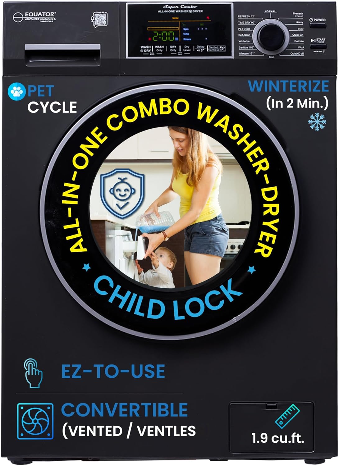 Equator All-In-One VENTED/VENTLESS Washer-Dryer 1.9cf/18lb 1400RPM 110V (Stormy Grey)