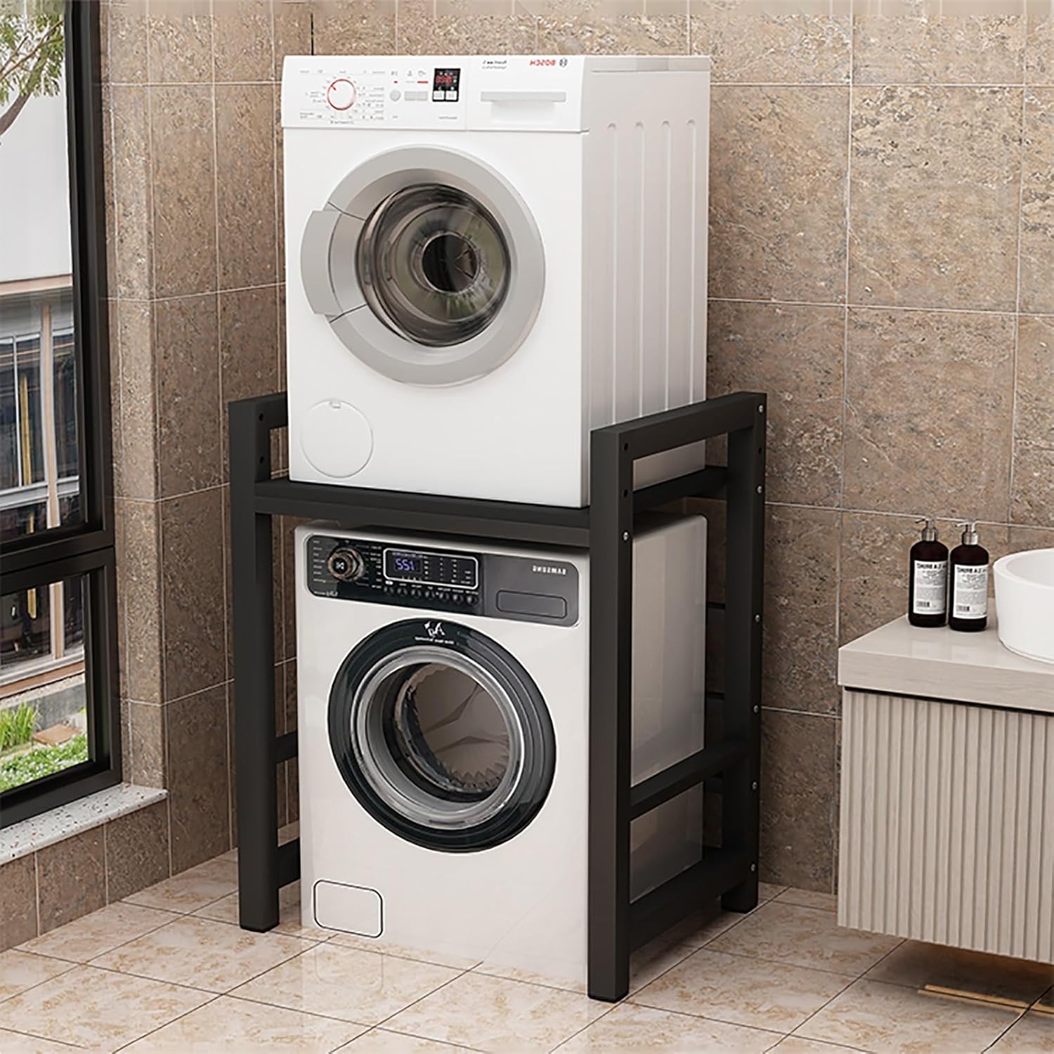 Dryer Stand Height Adjustable Portable Stacking Kit for Washing Machine Tumble Dryer Storage Rack Over Washing Machine Storage Unit Washing Machine Shelf Thickened Wave Wheel Washing Machine Top(Black