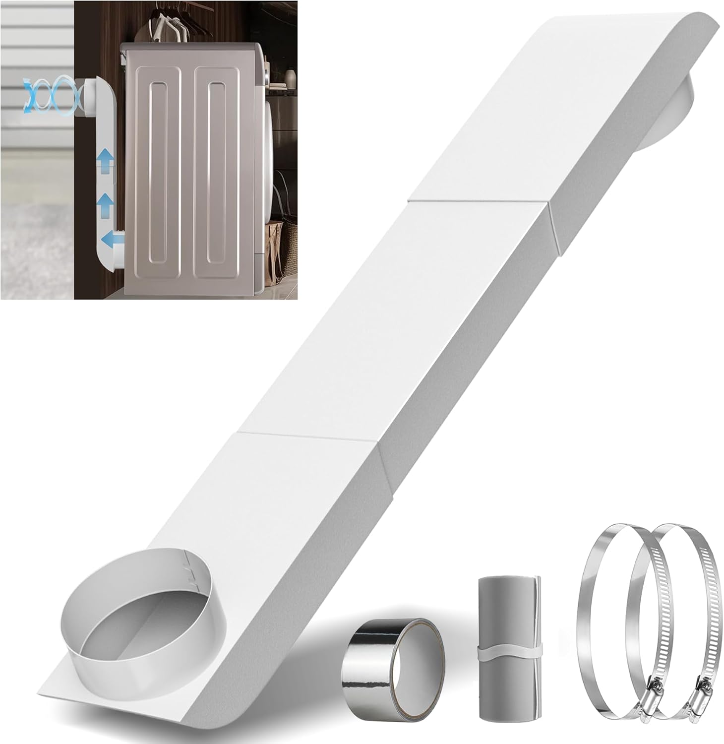 4" Periscope Dryer Vent, Upgraded 29-45" Adjustable Telescoping Dryer Vent, Stainless Steel Slim Flat Design for Tight Spaces, Low Profile Dryer Vent Kit with Foil Tape, Fits Laundry Venting