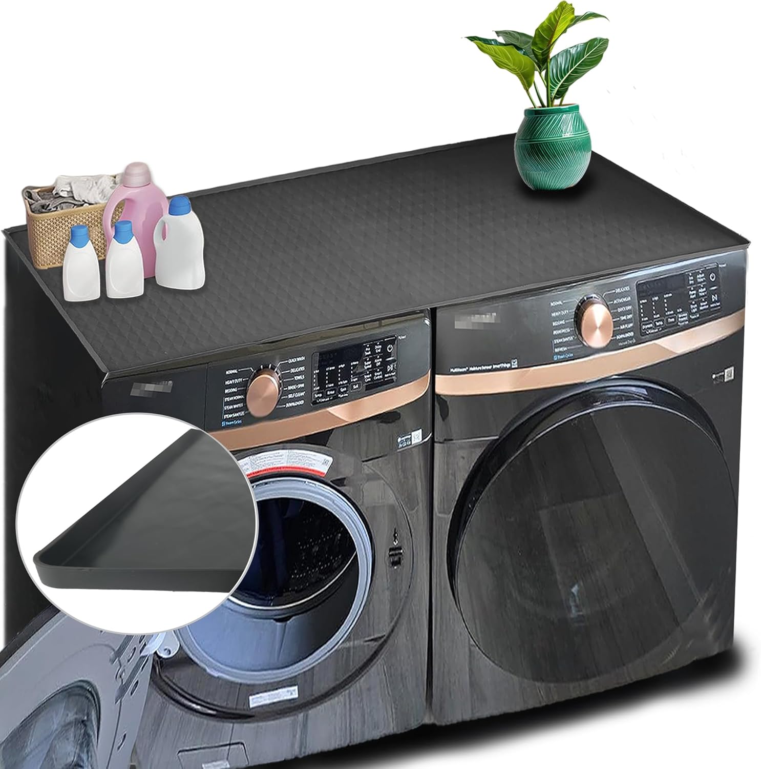 54'' x 27.5'' Upgraded 2.0 Washer and Dryer Covers for the Top, Silicone Non-slip Waterproof Washing Machine Mat Protector Top Load, Dust-Proof Washer & Dryer Cover Pad for Laundry Room Home(Gray)
