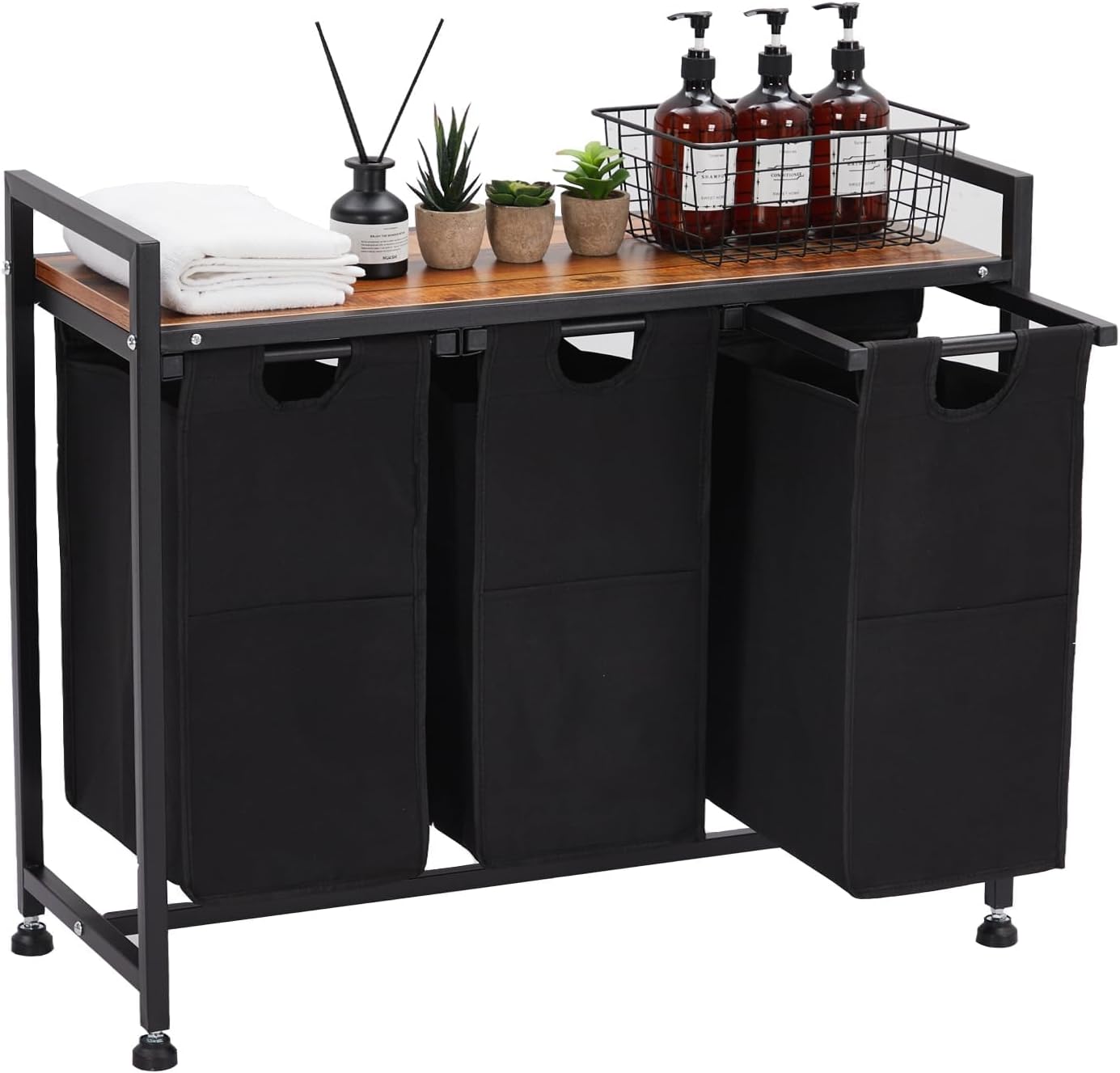 Laundry Sorter 3 Section, Laundry Hamper with Wheels, 3 × 11.5 Gal (130L), Rolling Laundry Basket, Pull-Out and Removable Oxford Fabric Laundry Bags, Black