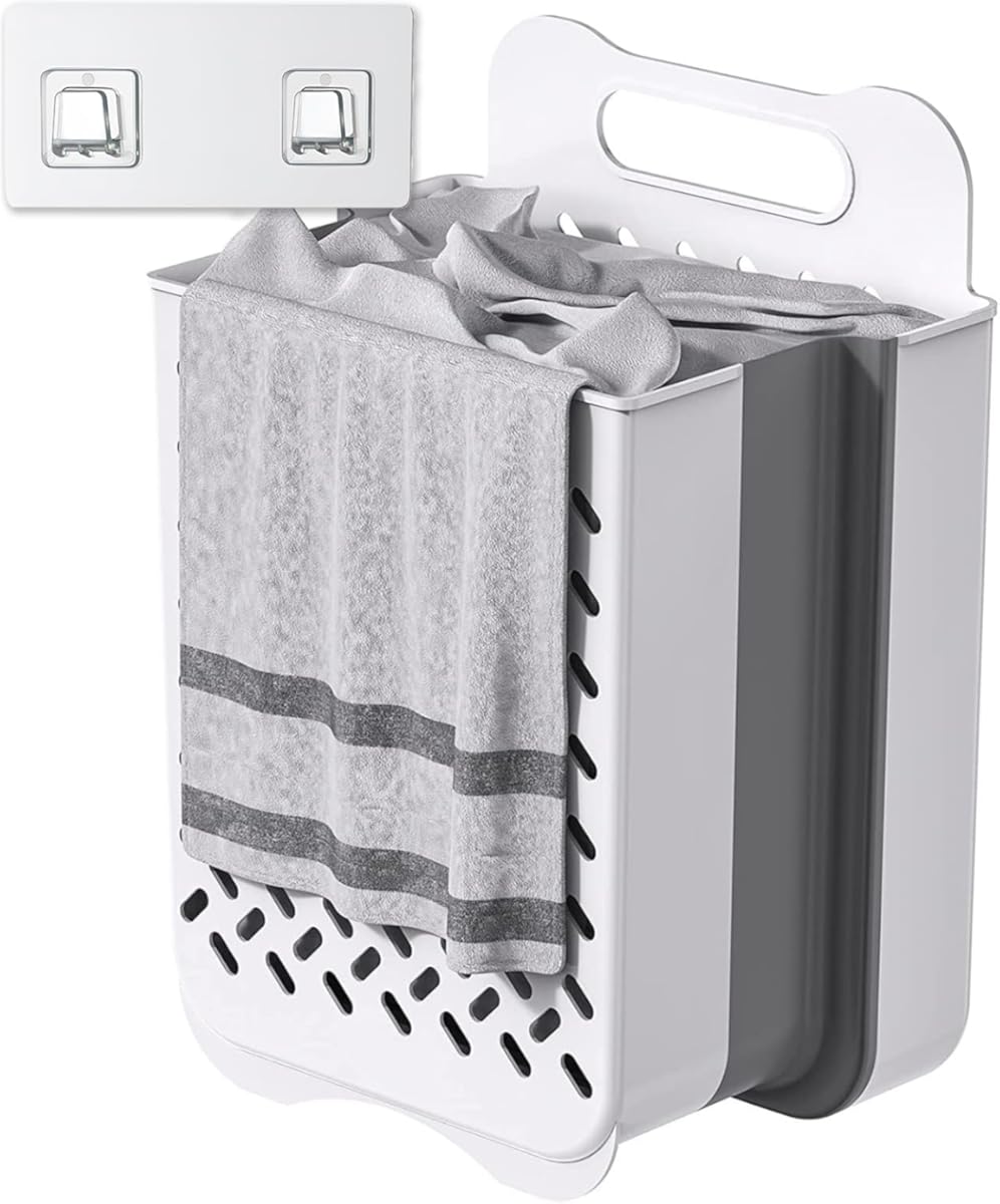 Plastic Foldable Laundry Basket with Handle, 42L Wall Mounted Laundry Hamper Freestanding Dirty Clothes Hamper, Collapsible Laundry Baskets Pop Up Hamper Storage Container for Snacks Dolls